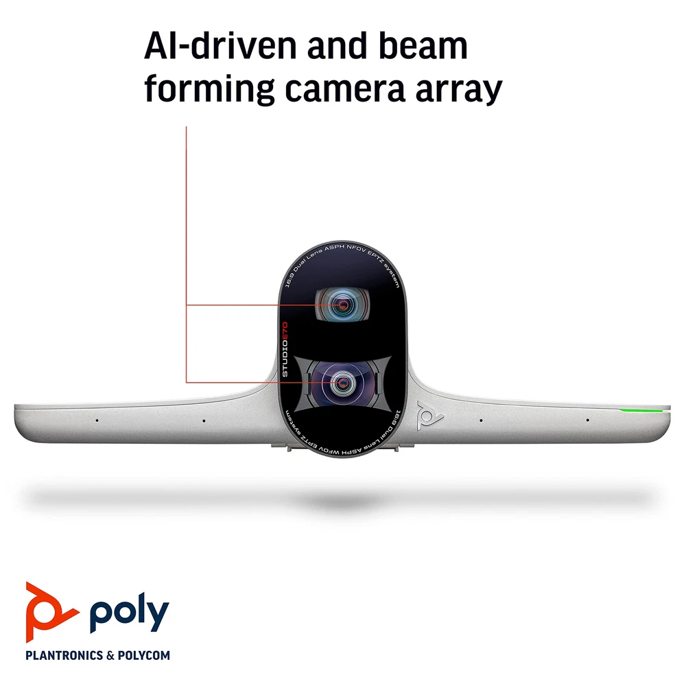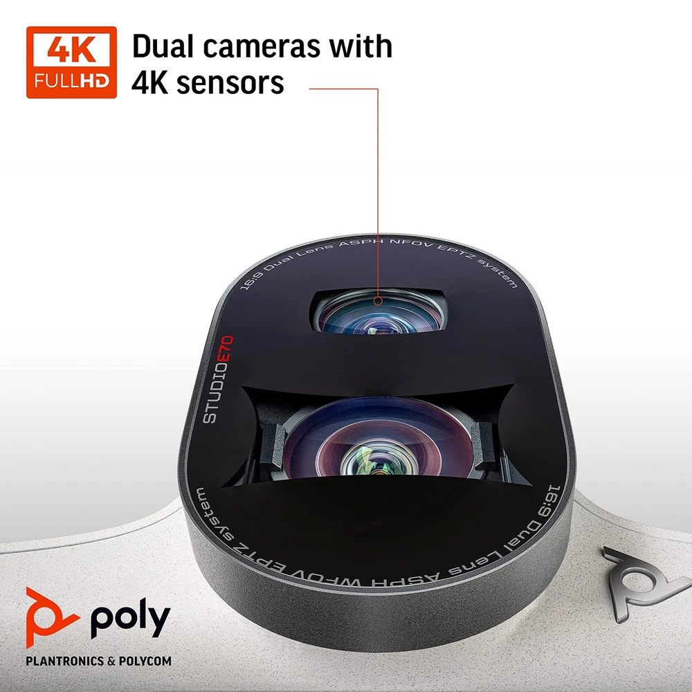 Poly - Studio E70 Intelligent Camera for Large Conference Rooms (Plantronics + Polycom) - Dual 4K Lenses, Speaker Tracking, & Group Framing - Works with Poly G7500 or Poly Microsoft Teams Room Product information Technical Details Standing screen display size 3 Max Screen Resolution 4K Brand Poly (Plantronics + Polycom) Series Poly Studio E70 Item model number 2200-87090-001 Item Weight 4.4 pounds Product Dimensions 14.4 x 5 x 11 inches Item Dimensions LxWxH 14.4 x 5 x 11 inches Manufacturer Poly Date First Available September 10, 2021 Video Quality: Life-like video from dual 4k lenses and camera sensors with professional-quality speaker tracking and group framing Privacy: Added security with motorized, integrated electronic privacy shutter Ideal For: Large meeting rooms up to 25ft long Management: Easy management with Poly Lens Desktop for Windows, or cloud-based management with Poly Lens device management software (some solutions sold separately), ensures high uptime and provides advanced analytics Compatibility Requirements: Works with Poly G7500 or Poly Microsoft Teams Room (sold separately). Power Over Ethernet (POE) required The Poly Studio E70 is a first of its kind intelligent camera that brings mind-blowing video quality, state-of-the-art audio features, and advanced analytics to modern meeting rooms. Dual cameras with 4K sensors are boosted by Poly DirectorAI technology to create an unparalleled video experience, perfect for hybrid working environments. You and your team will look amazing in the boardroom, while those on the other end will feel like they are right there with you. Shipping We offer FREE shipping on all orders! We ship within Three business days of payment, usually sooner. We use a selection of shipping services such as UPS, FedEx, USPS etc. We only ship to the lower 48 states, no APO/FPO addresses or PO Boxes allowed. Local pickups and combined shipping options are not provided at this time. Return You can return a product for up to 30 days from the date you purchased it. Any product you return must be in the same condition you received it and in the original packaging. Please keep the receipt. Payment We accept payment by any of the following methods: PayPal Please pay as soon as possible after winning an auction, as that will allow us to post your item to you sooner! Feedback Customer satisfaction is very important to us. If you have any problem with your order, please contact us and we will do our best to make you satisfied. Contact Us If you have any queries, please contact us via ebay. We usually respond within 24 hours on weekdays. Please visit our eBay store to check out other items for sale! Thank you for shopping at our store.