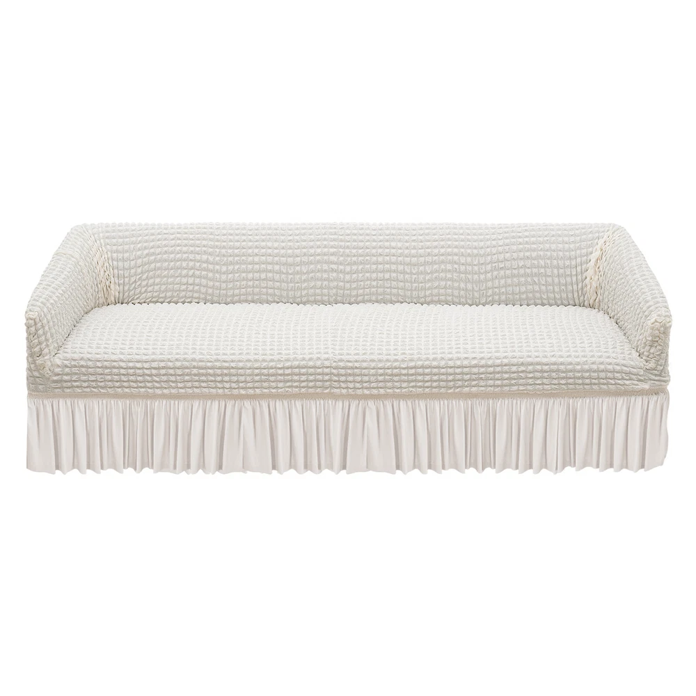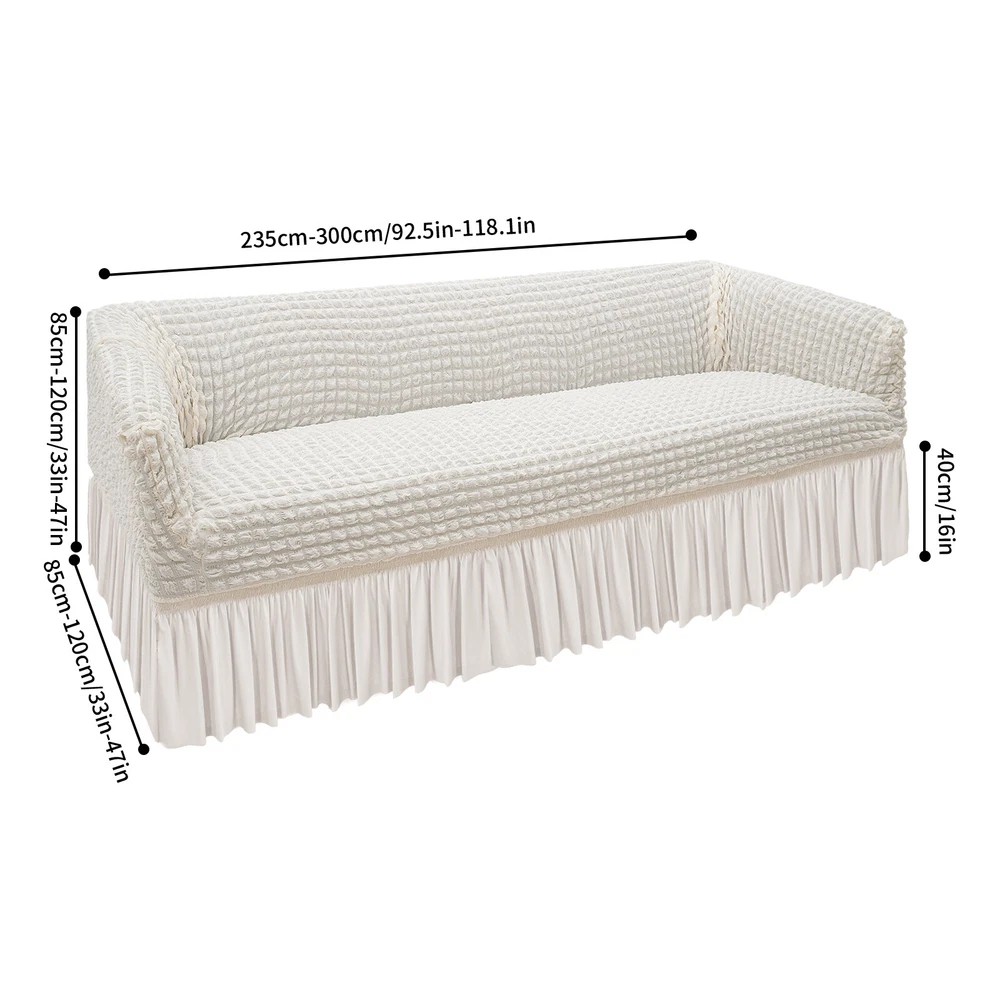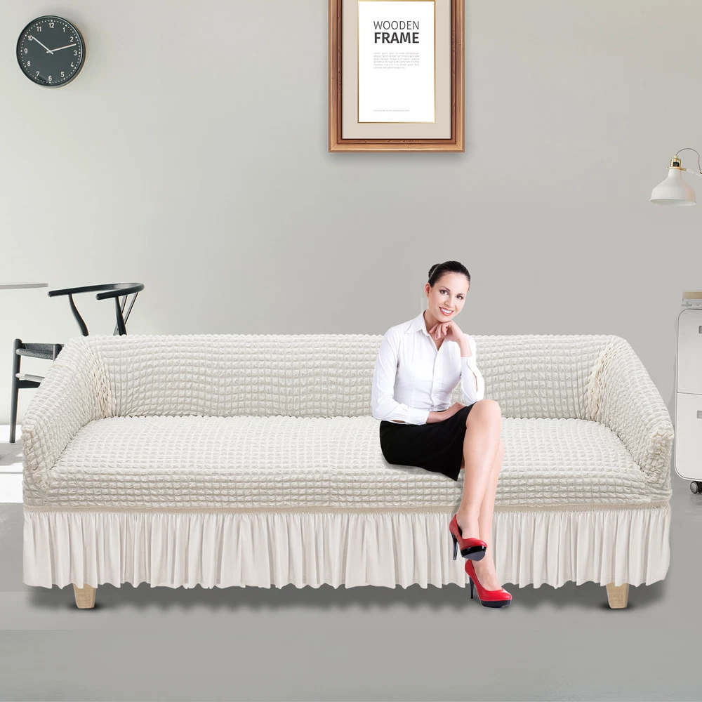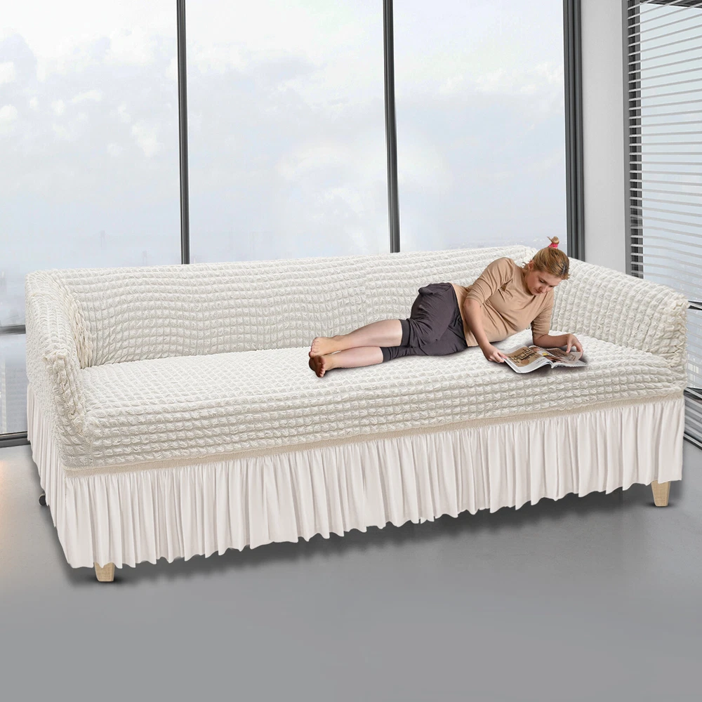 Polyester Sofa Slipcover High Elastic Sofa Protector With Foam Roller 4 Seat Description I guess that you've often struggled with the maintenance of your sofa, so our sofa slipcover will be an ideal choice for you! Our sofa slip covers adopt a skin-friendly seersucker design, which is soft and highly elastic and can wrap your sofa completely, not only preventing dust but also beautifying the sofa. Key Features Made to Last: This sofa slipcover is made of 95% polyester and 5% polyurethane and adopts a yarn dye process. It does not fade, shrink, or easily tear , and has good flexibility and durability. Thoughtful Design: The seersucker design is soft and breathable to the touch, stretchable, and can wrap the sofa in all directions without deformation. Without adding a fluorescent agent, pregnant women and children can also use it without damaging the skin. Intimate Companion: It is breathable, comfortable, soft, and textured, protecting your furniture from pet hair, daily wear, and stains, and providing you with a more comfortable leisure place. Exquisite Outlook: The delicate ruffles and skirt design allow it to protect the sofa while also bringing an elegant vibe to home decoration. Easy to Install and Replace: High elasticity and one-piece construction provide you with the great convenience of installation and replacement. Effortless Cleaning: It is both hand and machine-washable, providing you with great cleaning convenience. Four-season Versatility: This product is available for all seasons and will give you a comfortable touch in any season. Ideal Gift: With good performance and a modern appearance, it can be used as an ideal housewarming gift for parents, friends, and lovers so that they can also enjoy a more exquisite life. Good Customer Service: We aim to provide quality products and services. If you have problems, please feel free to contact us. We will reply and solve the problem for you as soon as possible. Details Anti-Slip Foam Rollers: They help you install the sofa slip cover and prevent displacement. Elastic Band: It helps you adjust the position of the sofa slipcover, keeps the sofa slipcover in place, and prevents it from sliding around. Application This product is suitable for sofas in living rooms, offices, hotels, etc. How to Install 1. Find the back label and make it always on the back of the sofa. 2. Put the slip cover on the sofa and then slowly pull the slipcover to the bottom. 3. Stretch the front slip cover to the bottom edge, which is elastic and durable. 4. Make the final adjustment by tucking foam rollers to fix the sofa(the package includes a set of foam rollers). 5. You have finished the installation, and now you can enjoy it. Specification Color: Cream Color Style: Modern Type: Four Seat Material: 95% Polyester + 5% Polyurethane Process: Yarn Dye Is Machine Washable: Yes Applicable Seasons: Universal Recommended Uses For Product: Sofa Product Length: 235-300 cm/92.5-118.1 in Product Width: 85-120 cm/33-47 in Product Height: 85-120 cm/33-47 in Skirt Height: 40 cm/16 in Package Size: 36*28*12cm/14.17*11.02*4.72in Gross Weight: 1.5kg/3.31lbs Package Included 1* Sofa Slipcover Notes Please measure the size of the sofa before purchasing, following the principle of choosing larger than smaller. Please note that the skirt type is not suitable for combination sofas. Please note that this product cannot be chlorine bleached, ironed, and dry cleaned. Please allow the slight color difference caused by the shooting light and 1-3cm error due to manual measurement, and make sure you do not mind before ordering. Payment Delivery details Terms of sales About us Contact us Payment We accept ebay payment 。 Fees such as import duties, taxes are not included in the item price or shipping costs. These charges are the buyer's responsibility. Delivery details Shipping: 2-9 working days to: USA Terms of sales We maintain high standards of excellence and strive for hundred percent customer satisfaction. Feedback is very important to us. We hope that you contact us immediately before you give neutral or negative feedback, so that we can address your concerns. It is impossible to address issues if we do not know about them! About us Your satis faction is our ultimate goal. We work hard to earn your trust and future business. Our certified technicians have tested each item before shipping. The unit comes with 1 year limited warranty on all manufacturing defects. a) If you receive a defective item, you may return it or ask for a discount. Please contact us within 14 days after you receive the package. b) What you returned must be intact and in its original packaging as re? u. Customer is responsible for shipping costs of the returned item. c) We will cover the cost of shipping back t with the shipping rate indicated in the registration page. We will send you a new unit or refund the full payment you paid. Thank you. Contact us Business Hour Business Hour: Monday To Friday: 8:30 AM to 5:00 PM (Beijing China time) Due to time zones, our reply to your questions may not be immediately. But within above working time, we will reply your email within 24 hours. If it's non-workdays, please kindly be patient and wait till Monday. Please contact us with ebay message. Please feel free to contact us if you have any questions. Monday To Friday: 8:30 AM to 5:00 PM (Beijing China time) Due to time zones, our reply to your questions may not be immediately. But within above working time, we will reply your email within 24 hours. If it's non-workdays, please kindly be patient and wait till Monday. Please contact us with ebay message. Please feel free to contact us if you have any questions. On Feb 18, 2025 at 00:08:04 PST, seller added the following information: