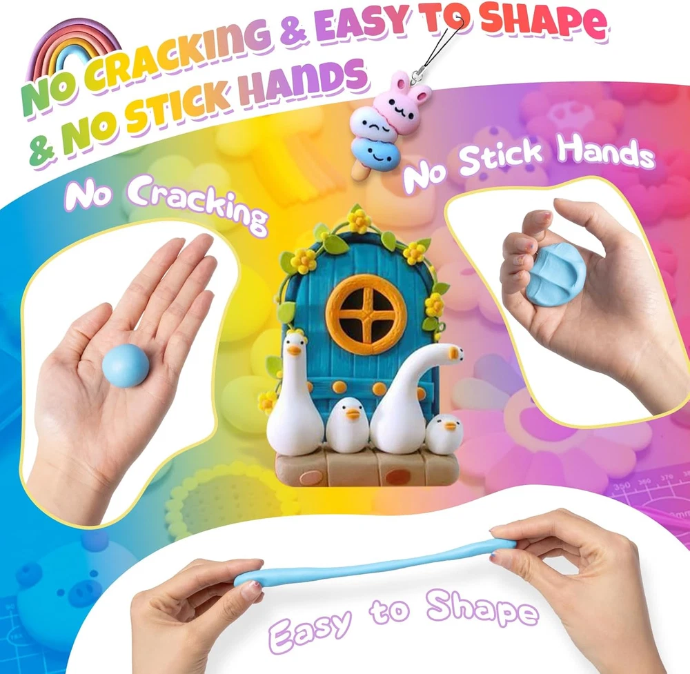 Polymer Clay, 50 Colors Modeling Clay for Kids, Non-Sticky Oven Bake Clay with S