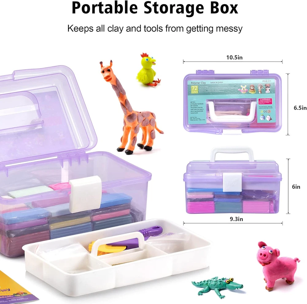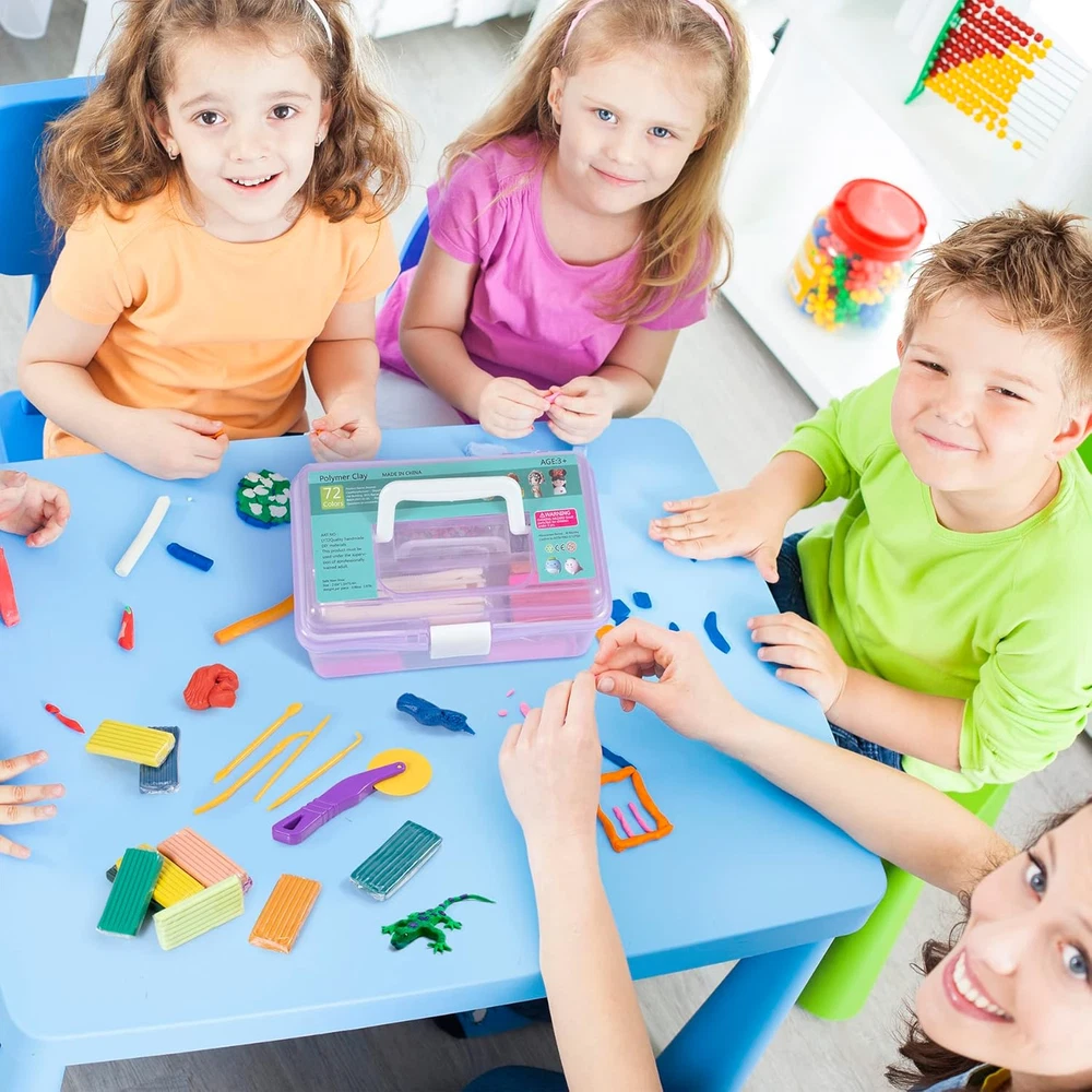 Store New Arrivals Add to Favorite View Feedback Contact Fast deliveries to the customer's home Quality customer service John Make the customers happy! Polymer Clay 72 Colors, Modeling Clay for Kids, Non-Sticky Oven Bake Clay with Sculpting Tools, Holiday Gift for Kids and Artists. Description Polymer clay kit: contains 72 colors of modeling clay (25g/block), 1 project booklet, 1 silicone mat, 9 clay sculpting tools, 49 decorative accessories, among which are bells, beads, earring hooks, hairpin holder, ring holders, key ring, needles, mobile phone chains and more, which can help make beautiful accessories Holiday Gifts for Children: Halloween gifts, Christmas gifts and birthday gifts for kids. Not only can bring joy to children, but also can explore their creativity, exercise hand-eye coordination, color perception and matching. Also suitable school projects and parent-child activities Strict Standards: Aestd-ST strictly adheres to ASTM D-4236 standards and requirements and contains no wheat, nuts or peanuts. (WARNING: Smaller parts, not suitable for children under 3 years old) Features: Oven baked clay hardens when heated, does not harden on its own, reusable, easy to stretch, easy to shape, easy to carve, does not crack, does not stick to your hands. It is an introductory modeling clay for children and beginners to make trinkets, animal models and character models After Sales Service: If you have any questions about the products purchased in our store, please feel free to contact us, our customer service staff will provide you with professional and friendly service to solve your problems in a timely manner Product Description 1 Aestd-ST Polymer Clay Kit 2 Parent-Child Time 3 School Craft Classes 4 Kids Craft Party 5 Best Gift Contains everything a small artist needs 72 Pieces Of Colorful Clay Double Layer Storage Box 51 DIY Accessories 1 Manual &10 Sculpting Tools Infinite Fun Create Art With Your Hands The video showcases the product in use. The video guides you through product setup. The video compares multiple products. The video shows the product being unpacked. 72L Color Polymer Clay Find What You Need 72 Colors Color 50 Colors 0.88 OZ 1 Piece Weight 0.88 OZ 5.6 Pounds Item Weight 3.3 Pounds 10 PCS Clay Tools 20 PCS 51 PCS DIY Accessories 49 PCS Craft Mat 72 Colors Color 50 Colors 0.88 OZ 1 Piece Weight 0.7 OZ 5.6 Pounds Item Weight 3 Pounds — Clay Tools — — DIY Accessories — Craft Mat 50L Color Polymer Clay 50L Color Polymer Clay Discover More from Aestd-ST Add to Cart Add to Cart Add to Cart Add to Cart Add to Cart Customer Reviews 4.5 out of 5 stars 469 4.5 out of 5 stars 3,236 4.5 out of 5 stars 3,236 4.5 out of 5 stars 3,236 4.9 out of 5 stars 40 Price $21.99 $ 21 . 99 $21.99 $ 21 . 99 $26.99 $ 26 . 99 $35.99 $ 35 . 99 $29.99 $ 29 . 99 Color 42 Colors 50 Colors 60 Colors 72 Colors 85 Colors Clay Tools ✔ ✔ ✔ ✔ ✔ 1 Piece Weight 0.43 OZ 0.7 OZ 0.7 OZ 0.88 OZ 0.7 OZ Item Weight 1.98 Pounds 2.86 Pounds 3.39 Pounds 4.9 Pounds 4.6 Pounds Age Range Ages 3 and up Ages 3 and up Ages 3 and up Ages 3 and up Ages 3 and up Safety ✔ ✔ ✔ ✔ ✔ Type Air Dry Clay Polymer Clay Polymer Clay Polymer Clay Polymer Clay Does the clay contain gluten? Does the clay contain gluten? No, it does not contain gluten and is free of allergens. Is this polymer clay reusable? Polymer clay does not dry naturally and you can reuse it. However, if it is dried in the oven, it cannot be reused. Does the clay crack when baked? No, please feel free to use it. How big is each piece of clay? Size: 2.67 x 1.06 x 0.35 inches, Weight: 0.88 oz. What is included in this clay kit? Includes 50 pieces of colorful modeling clay, 1 project booklet, 20 sculpting tools, 49 decorative accessories (bells, beads, earring hooks, hairpin holders, ring holders, key rings, pins, cell phone chains, etc.) Item model number L102A Included Components function(f) {var _np=(window.P._namespace("DetailPageProductOverviewTemplatesJava"));if(_np.guardFatal){_np.guardFatal(f)(_np);}else{f(_np);}}(function(P) { P.when('A').execute(function(A){ A.on('a:truncate:po-attribute-truncate-8:updated', function(data) { var isTruncated = !data.truncateInstance.getIfTextFits(); var seeMoreElement = document.getElementById('po-attribute-see-more-id-8'); if(seeMoreElement) { seeMoreElement.style.display = isTruncated ? '' : 'none'; } }) }); })); 49 decorative accessories, 9 clay sculpting tools, 1 project booklet, 1 silicone mat, 72 colors polymer clay See more Item dimensions L x W x H 6.59 x 6.1 x 10.5 inches Number of Items 72 Color 72 Colors Educational Objective Dexterity, Hand-Eye Coordination, Shape Recognition, Creative Skill, Color Recognition Material Clay Country of Origin China Item Weight 5.4 Pounds Age Range (Description) 3+, Kids,Teens, Adults Recommended Uses For Product Oven Bake, Modeling, Sculpting Model Name L102A Special Feature Modeling clay, Oven Bake Clay, Sculpting Clay, Polymr Clay Product Dimensions 6.59 x 6.1 x 10.5 inches ABOUT US We offer the best prices around on high quality products. Our E-store includes media such as books, movies, music and games while offering electronics, toys, sporting apparel, clothing, tools, general home, garden items and more. SHIPPING We are always working hard to ensure your package arrives as soon as possible. Please understand that some factors like weather, high postal traffic, and the performance of shipping companies are outside of our control. We offer free shipping to the lower 48 states and ship within 2 business days of payment, usually sooner. We do not accept P.O. Boxes. Please provide a physical address. For shipping outside of the continental USA, we only use eBay's Global Shipping Program. The item is shipped to KY and then sent to the rest of the world. International customers are responsible for all duties and taxes. Continue to 'check out' to calculate costs for shipping the item to your country. Messages regarding eBay's Global Shipping Program MUST be dire