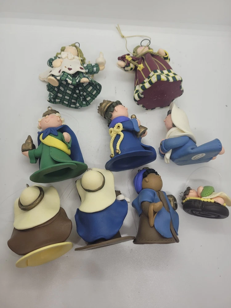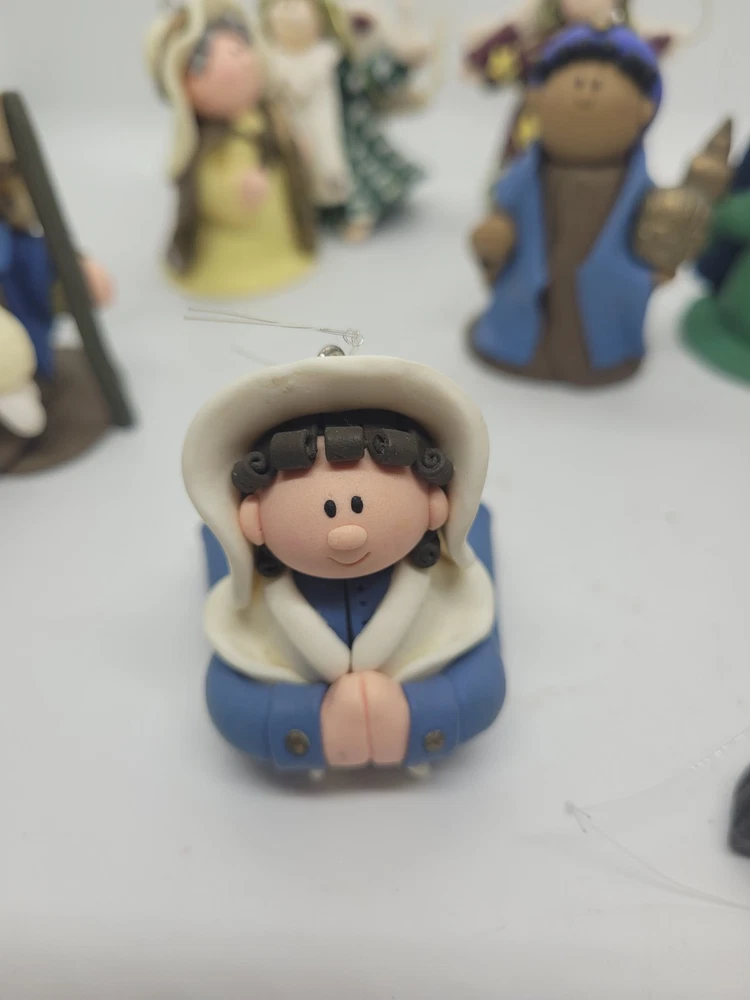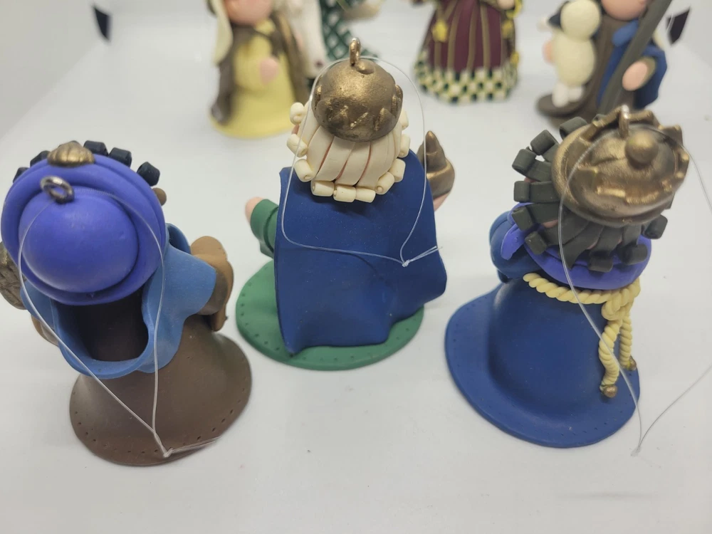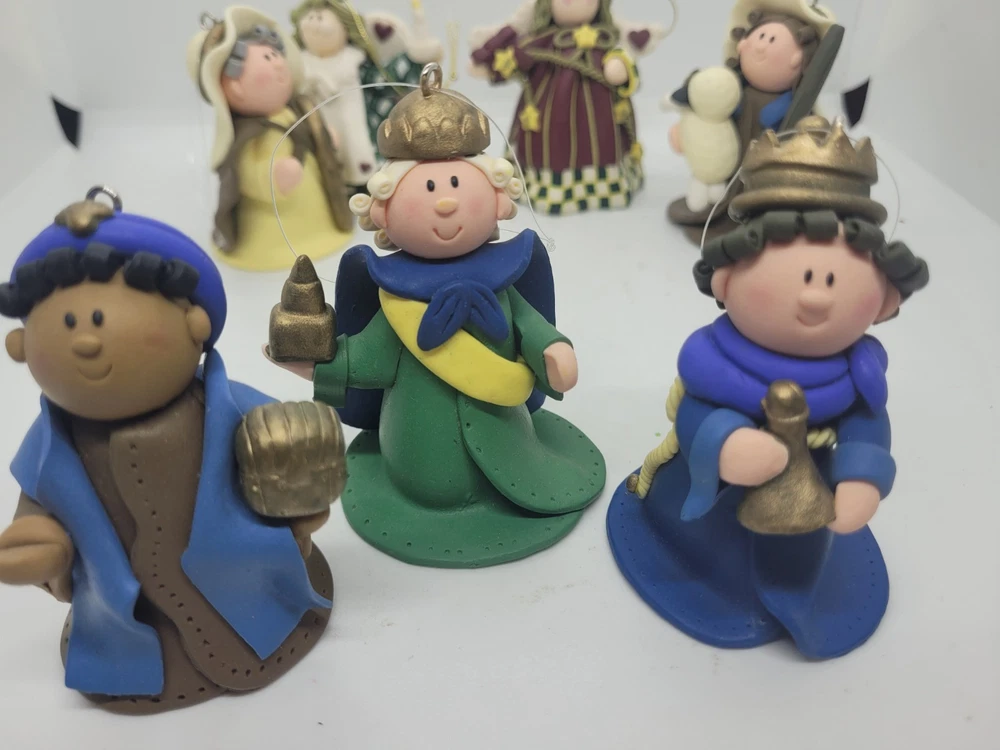 Polymer Clay Colorful Nativity Figurines Baby Jesus Mary Wisemen Angel In Scene