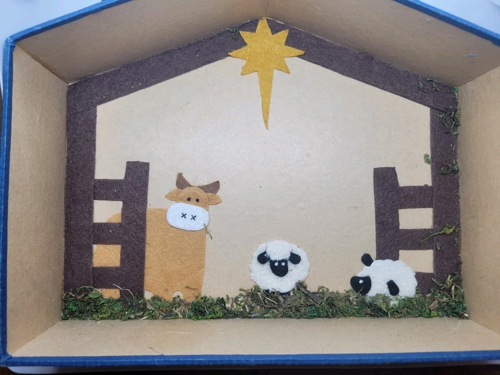 Such a unique nativity set! 9 pieces fit within a storage box that doubles as a Manger Scene. Each figurine can be used for tabletop display or hung as Christmas tree ornaments. This set includes Baby Jesus, Mary, 3 Wisemen, 2 angels, and 2 shepherds. Check out the pictures, there is so much detail! Reminds me of Kneaded Angels. Was possibly produced by BAF Creche. Smoke/pet free home.