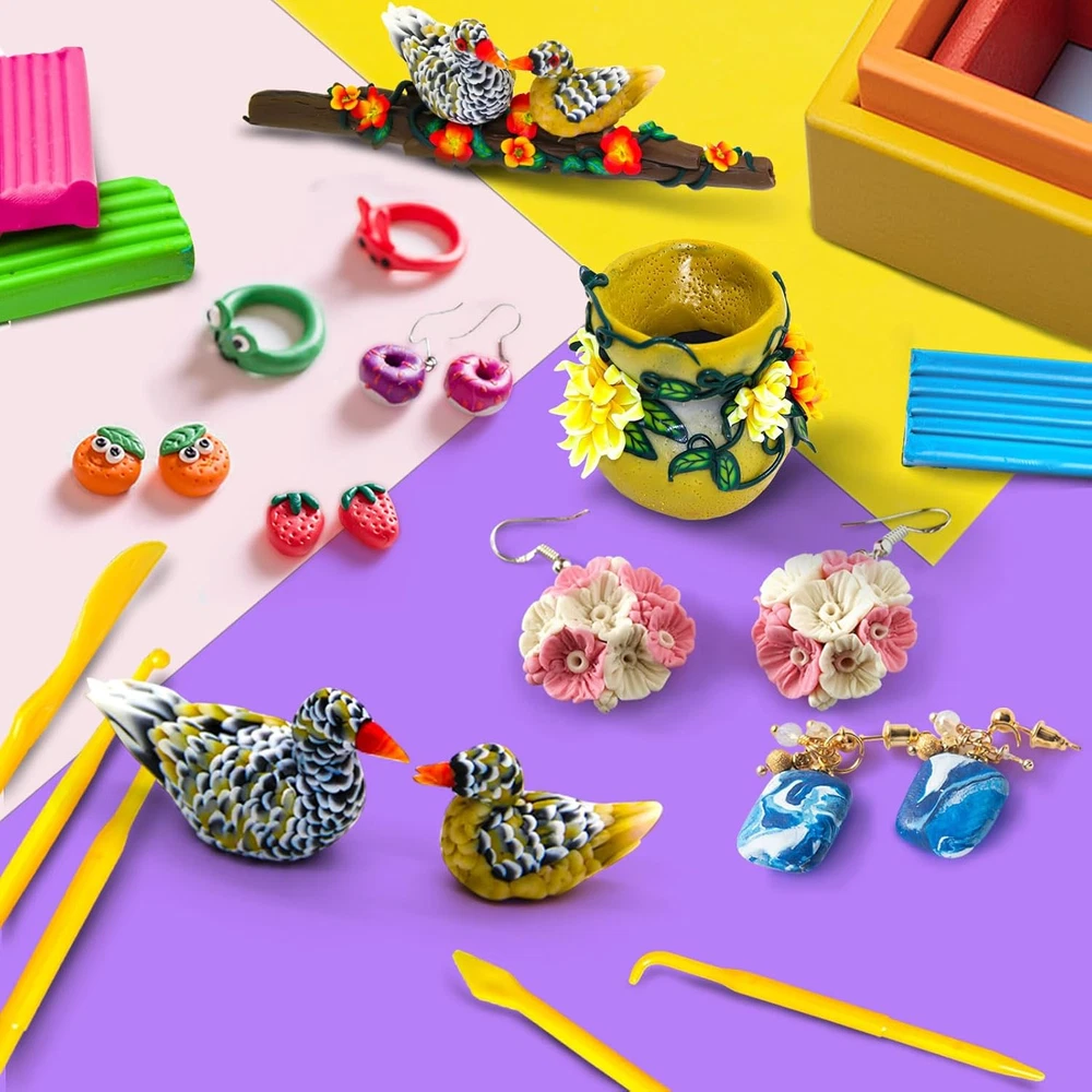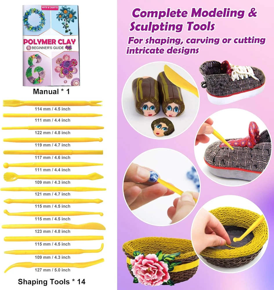 Store New Arrivals Add to Favorite View Feedback Contact Fast deliveries to the customer's home Quality customer service John Make the customers happy! Polymer Clay Kit, 64 Colors Modeling Clay, DIY Oven Bake Molding Clay for Kids with Sculpting Clay Tools, Art Craft Gift for Kids Description Polymer Clay: Each set comes with 64 colors clay(0.7 oz/block), 14 sculpting tool findings to create custom fashion accessories and home decor items Easy to Shape: Polymer clay is made of PVC, no stick hand. Easy to bend and stretch. soft, smooth, non-stick and stretchy. Conducive to increase imagination, creativity and intellectual About Bake: 1. Oven bake (Recommend, oven set temperature of 135℃ (275℉) and bake 10-15 minutes) 2. Boil method (suitable small works size in 1/3 inch) 3. Hair Blower Heating (Suitable small works size in 1-2 inch) DIY Gift for Kids: Brithday toy gift for 3 4 5 6 7 8+ Years old boys girls kids, Craft kits improve children's practical ability and exercise children's hand-eye coordination. Equipped with a variety of accessories for kids and beginners to create small ornaments, model animals, etc Endless Creative Possibilities: Ideal for creating jewelry, figurines, home décor items, ornaments, charms, and much more. Whether you’re an experienced artist or just starting out, this kit offers endless opportunities for creativity. Product Description It’s time to let your imagination run wild with POLYMER CLAY from ESSENSON About Curing Molding Methods 1. Oven baking Place polymer clay on an oven-safe glass or ceramic tile Bake at a temperature of 248-266°F (120-130°C) for 15 minutes per 1/4 inch (6.0 mm)thickness 2. Heating by hair dryer Suitable for 1-2 inch size works Put the work in a closed box and heat it for 3-5 minutes to curing 3. Boiling method Put the work on the plate and put it in cold water until the water boils Keep boiling for 10 to 20 minutes Take it out after natural cooling Precautions If the clay is too hard, please pack the clay with a plastic bag. And put them into a 50° degree water for 5 minutes. That would soften the clay. 1 Variety of Colors 2 DIY Your Own Art Crafts 3 Easy to Use 4 Perfect Gift for Kids SHOP ALL "ESSENSON" Polymer Clay! Add to Cart Add to Cart Add to Cart Customer Reviews 4.2 out of 5 stars 211 4.2 out of 5 stars 211 4.2 out of 5 stars 211 4.2 out of 5 stars 211 Price $14.99 $ 14 . 99 $8.99 $ 8 . 99 — $19.99 $ 19 . 99 Color 56 Colors 28 Colors 42 Colors 64 Colors Per Piece Weight 0.7 oz 0.7 oz 0.7 oz 0.7 oz Engraving Tools 15 PCS 5 PCS 5 PCS 14 PCS Accessories 50 PCS 30 PCS 43 PCS - Age Range Ages 3 & up Ages 3 & up Ages 3 & up Ages 3 & up Age Range Description Ages: 3 years and up Model Name Clay Color 64 Colors Material Clay Material Type Clay Age Range (Description) Ages: 3 years and up Art Craft Kit Type Polymer Clay Seasons All Seasons Additional Features Oven Bake Subject Character General Cartoon Character General Included Components Polymer Clay, 14 Sculpting Tool Findings ABOUT US We offer the best prices around on high quality products. Our E-store includes media such as books, movies, music and games while offering electronics, toys, sporting apparel, clothing, tools, general home, garden items and more. SHIPPING We are always working hard to ensure your package arrives as soon as possible. Please understand that some factors like weather, high postal traffic, and the performance of shipping companies are outside of our control. We offer free shipping to the lower 48 states and ship within 2 business days of payment, usually sooner. We do not accept P.O. Boxes. Please provide a physical address. For shipping outside of the continental USA, we only use eBay's Global Shipping Program. The item is shipped to KY and then sent to the rest of the world. International customers are responsible for all duties and taxes. Continue to 'check out' to calculate costs for shipping the item to your country. Messages regarding eBay's Global Shipping Program MUST be directed at eBay EXCLUSIVELY. RETURNS We offer a 30-Day Return Policy on items in which you are not completely satisfied with. You have the option of a full-refund or an exchange of the item. No returns are available on items shipped outside of the USA PAYMENT We accept PayPal. CONTACT US This page content is yet to come Please ad us to your favorite seller and visit again later Thank You CUSTOMER SATISFACTION We try our very best to make sure every customer is completely satisfied. If there's a problem, message us! We're happy to help. WE ACCEPT