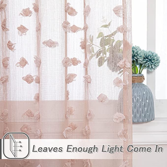 Pom pom voile sheer curtains allow appropriate amount of sun lights in, lighten your home and make your room more spacious.They are soft and elegant!Adding elegance and fashion to your rooms. Premium imported polyester is durabale for long term use.They are suitable for living room, bedroom and guest room.Your won't fear of darkness anymore during sleep. What's more, it's elegant design matching any decoration style. Curtain Set with Rod Pocket: This curtain set includes 37"x72" panels, ready to hang with a convenient rod pocket top. Easy to install,just slide your curtain rod through Stylish Polyester with Playful Pom-Poms: Crafted from durable polyester, these sheer curtains feature a chic pom-pom design. The textured detail adds a cozy, boho touch while maintaining a lightweight, breezy feel for any room. Soft Light Filtering & Privacy: Semi-sheer fabric gently diffuses sunlight, creating a warm glow while maintaining privacy. Ideal for living rooms or bedrooms—bright enough for daytime, private enough for comfort. Multi Functions: These pom pom curtains can be paired with various styles of rooms, such as modern, bohemian, and farmhouse. You can hang it in your bedroom, living room, kitchen, or cafe Nursing instructions: Please wash with a cold water. Cool iron if needed. It is easy to press out wrinkles with a light setting iron.