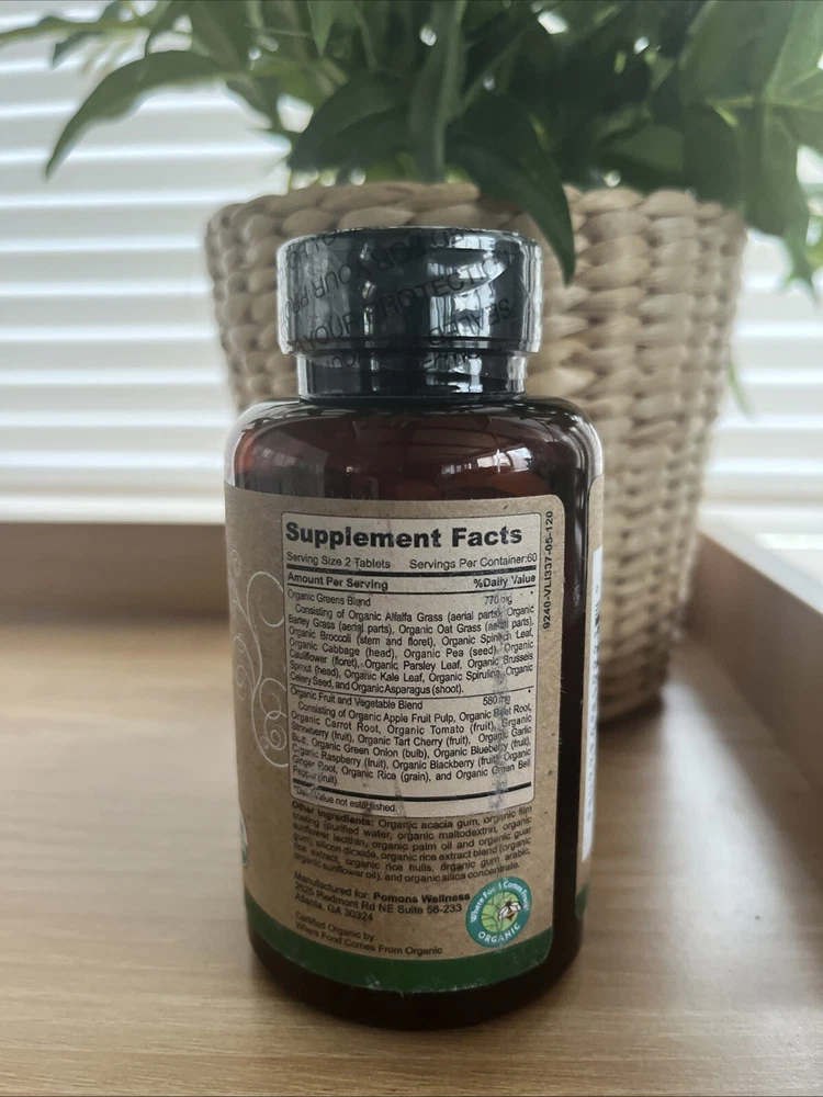 Pomona Wellness Organic Greens Superfood Supplement 120 Tablets Exp. 03/2025.