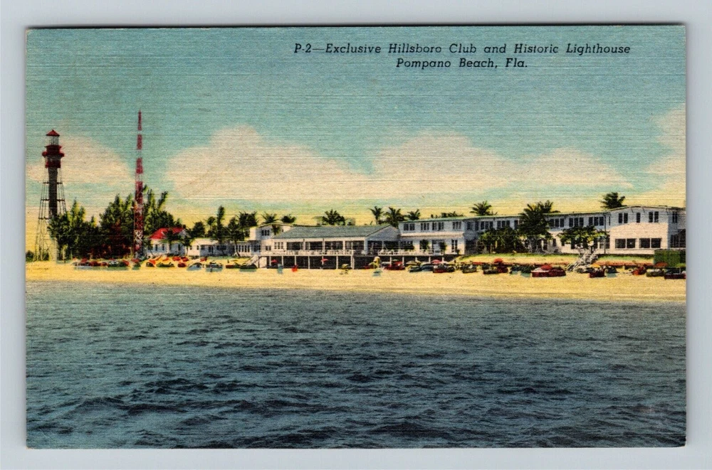 Pompano Beach, FL-Florida, Hillsboro Club & Lighthouse, c1957 Vintage Postcard