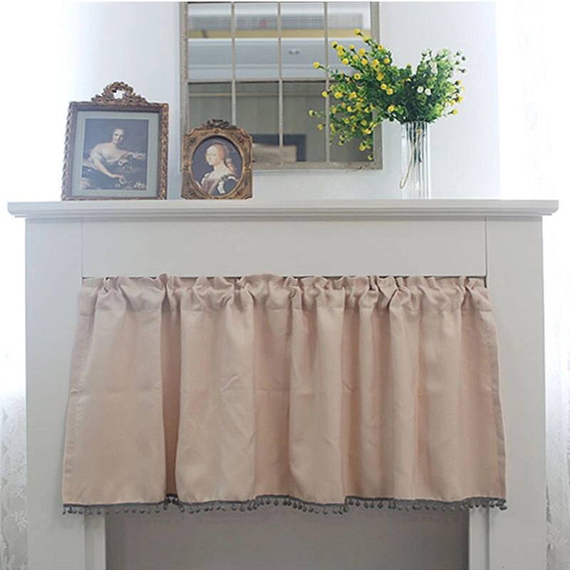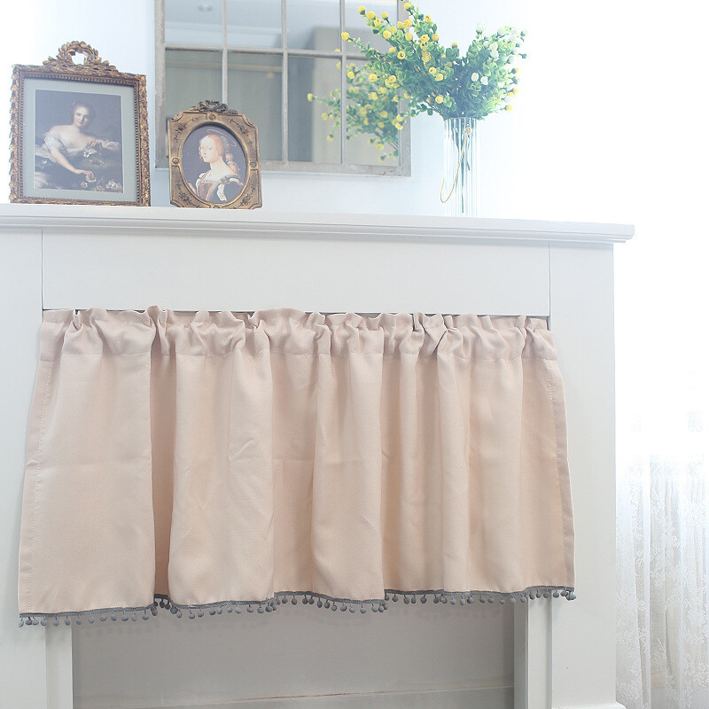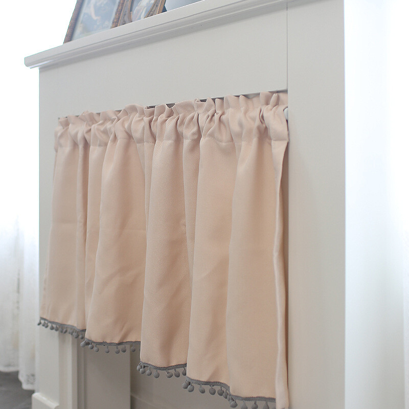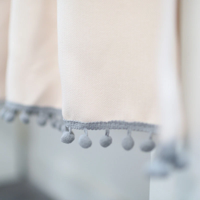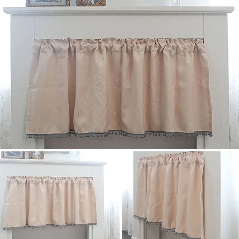Pompon Rod Pocket Short Curtain for Kitchen Cabinet or Window Decor