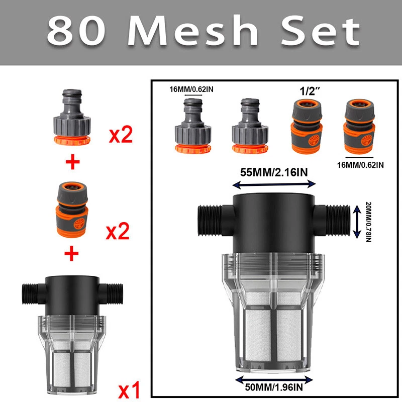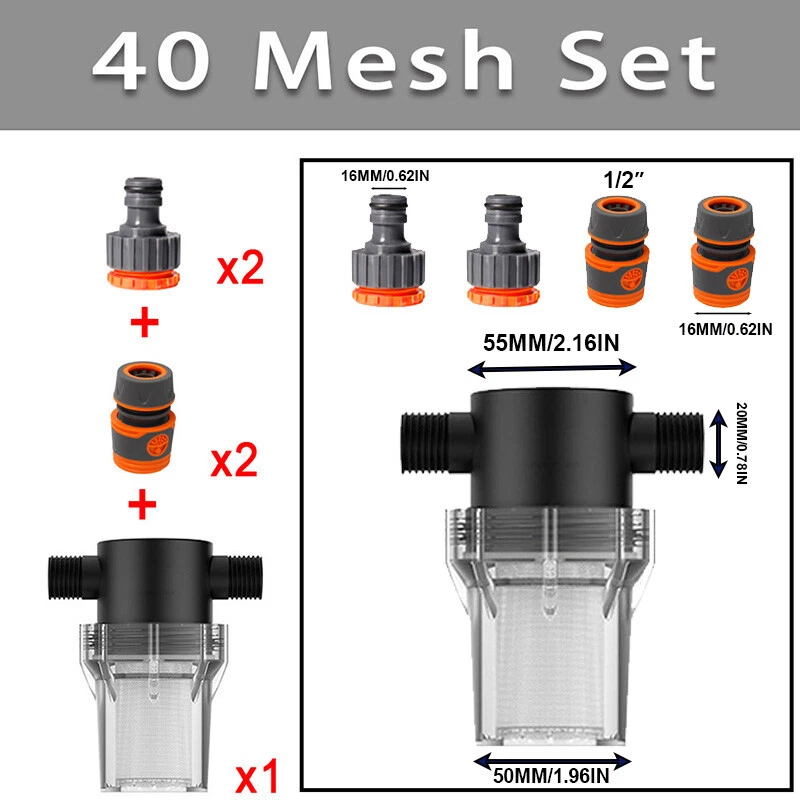 Pond Water Pump Filter Set 40/80 Mesh Strainer Garden Irrigation Hose Connector