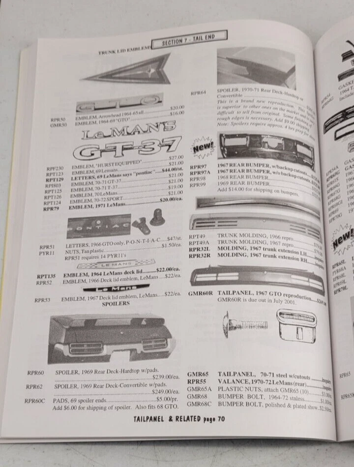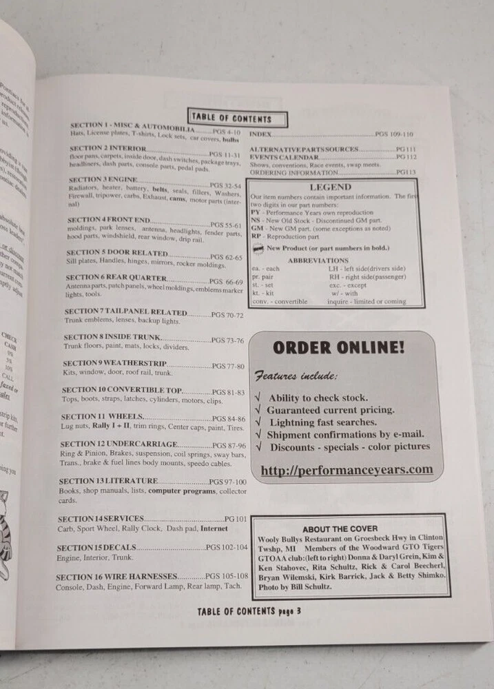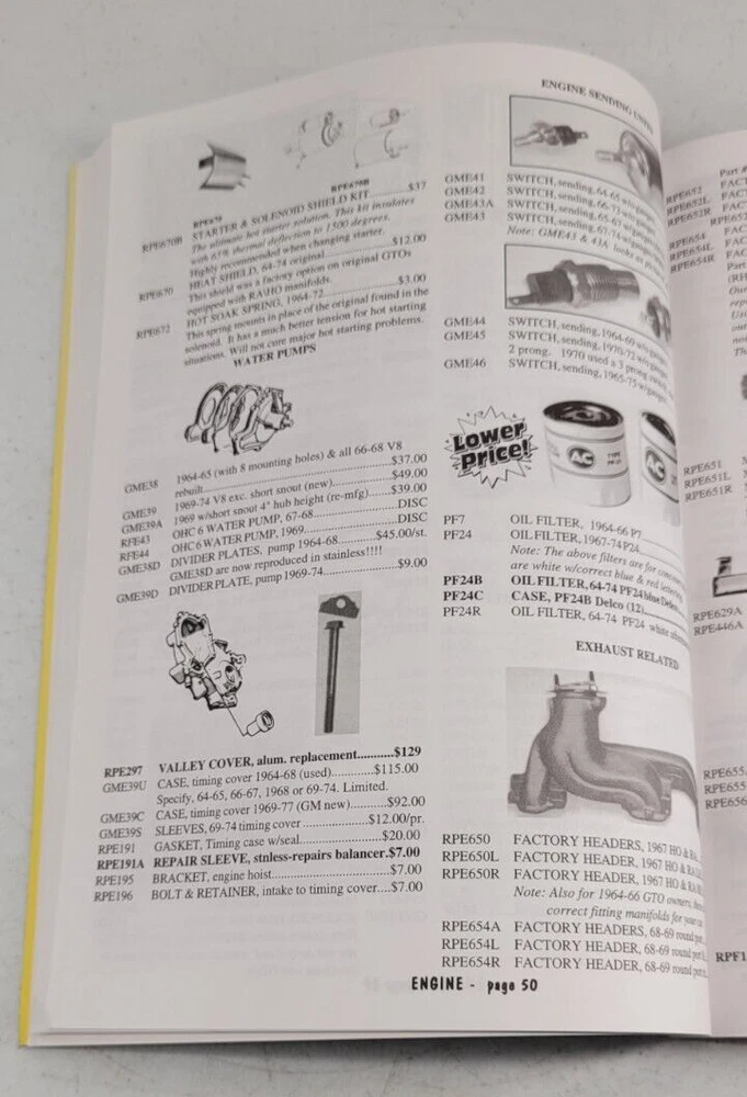 Pontiac Performance Years Catalog 8B GTO Tempest Lemans Parts Accessories
