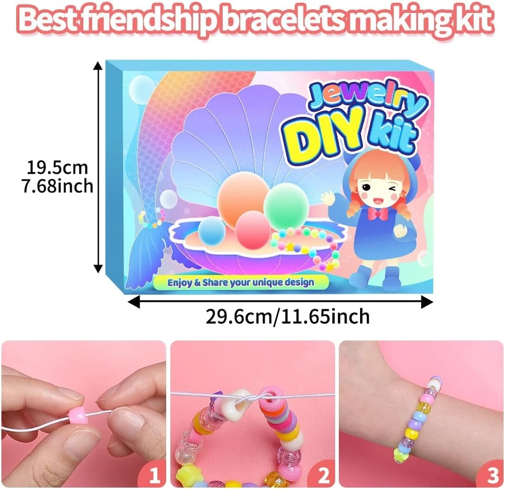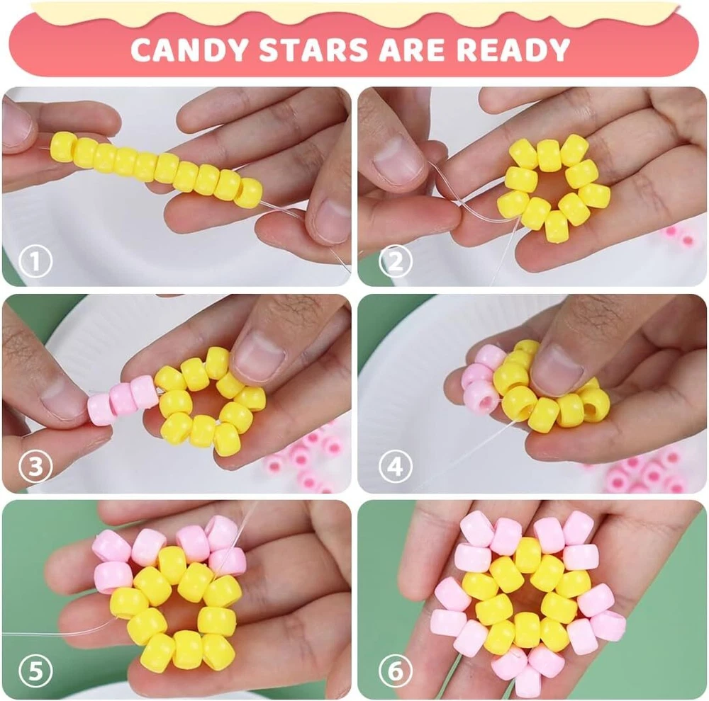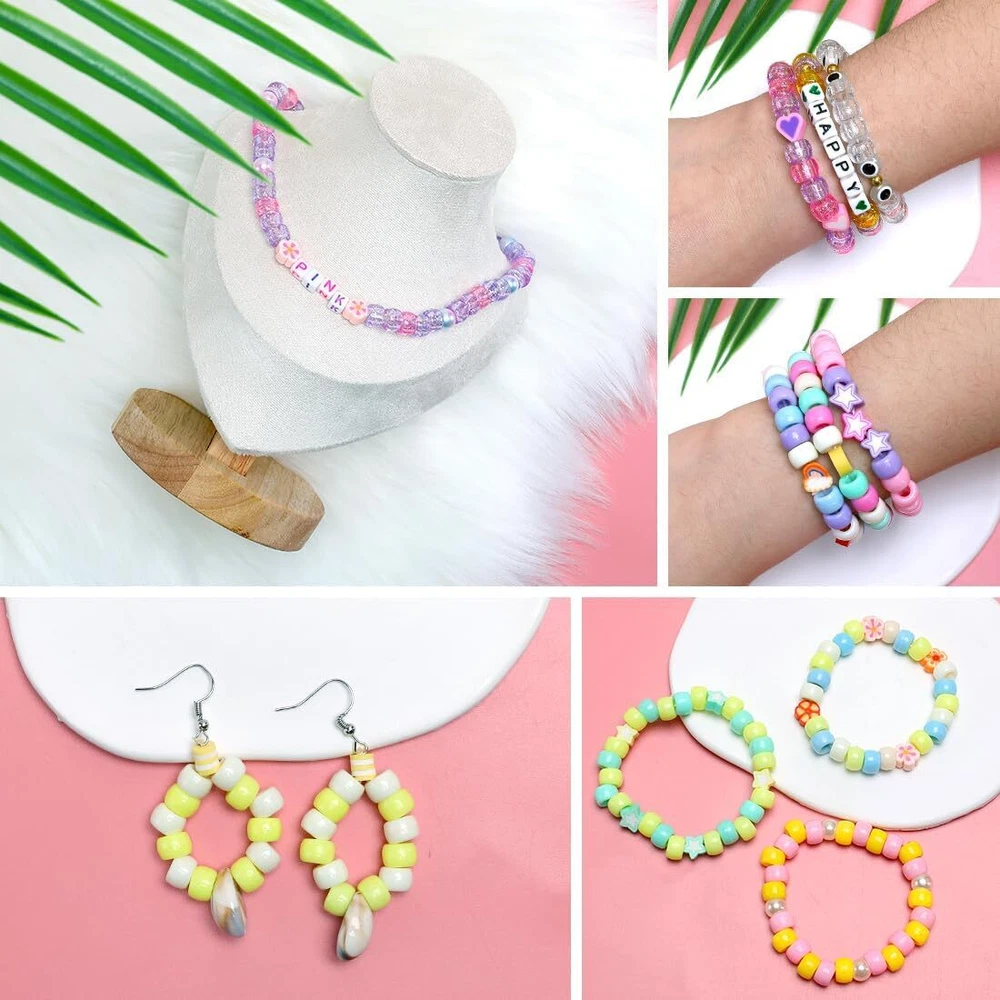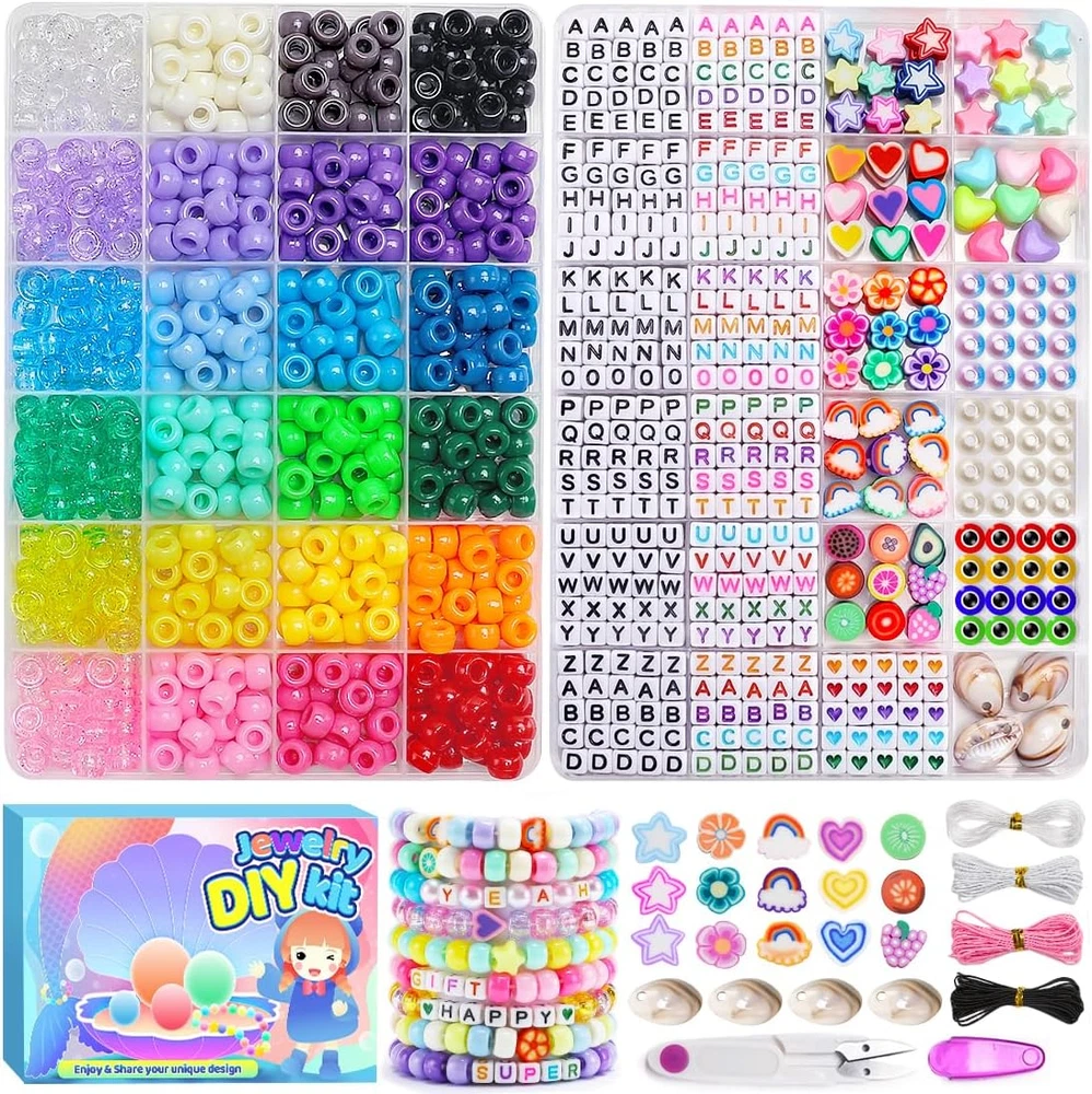 【Package include】2 boxes of various beads in 48 grids: A box of 400+pcs pony beads in 24 colors, 360pcs square letter beads in 2 styles, 30pcs heart beads, 50pcs shaped clay beads, 20pcs evil eye beads, 40pcs pearl beads, 30pcs shaped pony beads, 4pcs shells, 4 rolls of stretchy string, 1 pair of scissors. 【Various color】The pony beads are in glitter colors and solid colors, the letter beads are in 2 colors, the other beads are all colorful. The colored beads are bright and vibrant, you can make all kinds of bracelet styles with the colorful beads. 【DIY pack】The bracelet making kit is an ideal present for friends or loved ones. You can make some own design bracelets, necklaces, earrings for them, or just send the beads kit to friends who love crafts. 【More than jewelry making】You can also create fun crafts like key chains and pendants. You can create frogs, ice cream, turtles, dolphins, and so many more! Attach your bead pets to the key rings and lanyard clips to decorate your backpack, keys and lanyards. Make your own design of decorations. 【Premium products】The beads for jewelry making are made of premium materials, they are well packed in boxes, the package is convenient and easy for carry and storage. Product Description The video showcases the product in use. The video guides you through product setup. The video compares multiple products. The video shows the product being unpacked. Art and craft supplies Add to Cart Add to Cart Add to Cart Add to Cart Add to Cart Add to Cart Customer Reviews 4.7 out of 5 stars 813 5.0 out of 5 stars 5 4.7 out of 5 stars 813 4.7 out of 5 stars 512 4.7 out of 5 stars 512 4.5 out of 5 stars 174 4.4 out of 5 stars 288 Price $5.99 $ 5 . 99 $9.99 $ 9 . 99 $6.99 $ 6 . 99 $6.99 $ 6 . 99 — $5.99 $ 5 . 99 $4.99 $ 4 . 99 Ideal for Crafts ✔ ✔ ✔ ✔ ✔ ✔ ✔ Quantity 900+pcs 2000pcs 1000pcs 6000+pcs 4000+pcs 100m 28 grids Colors Multi-colored Multi-colored Candy colored Multi-colored Multi-colored Clear Clear Size Assorted size 6*9mm 6*9mm 6*1mm Assorted size 1mm 8.6*5*0.66 inch Gift packaged ✔ ✔ ✔ ✔ ✔ ✔ ✔