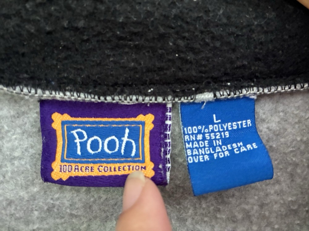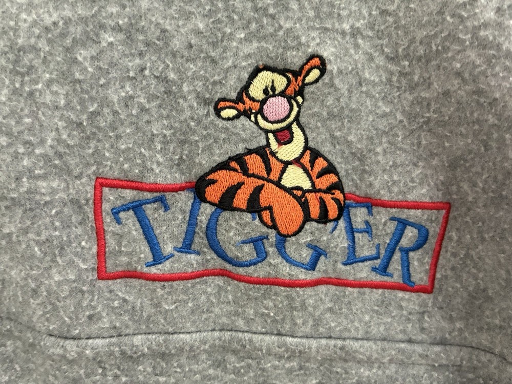Pooh 100 Acre Collection Women's Embroidered Tigger Cozy Fleece Sweatshirt Gray L. Condition is pre-owned. Smoke free, pet free home. Shipped via USPS Ground Advantage. In fair condition. There is pilling of the fabric all over. Free of rips or stains.
