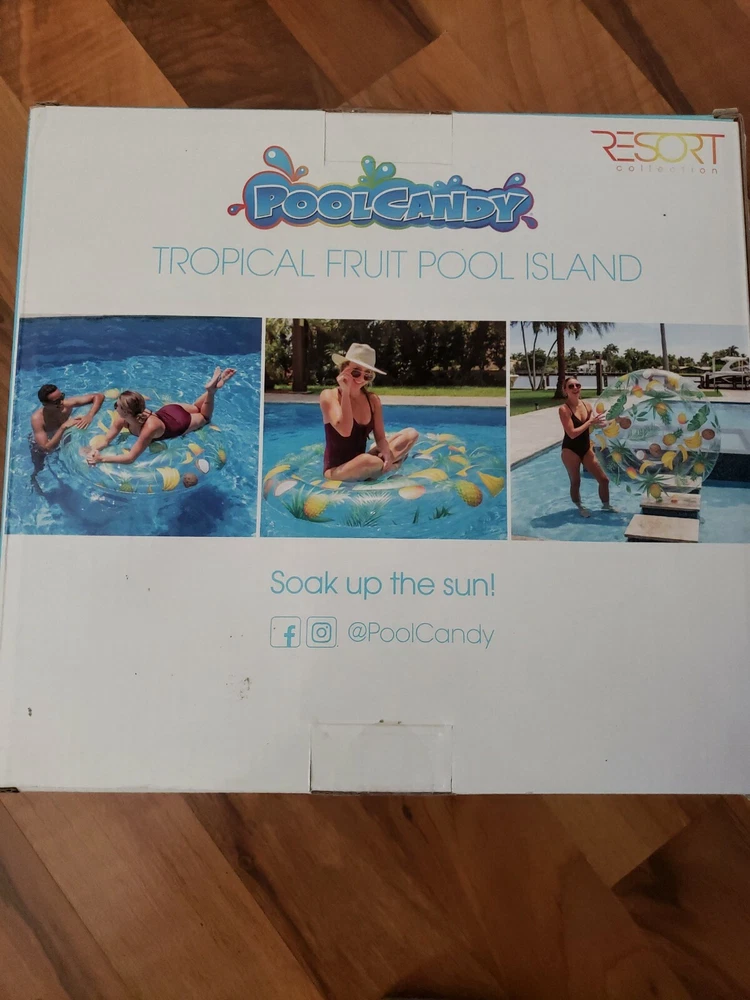 Pool Candy Tropical Fruit Jumbo Pool Island NEW Float Pineapple Coconut Bananas. Relax in the tropical sun with this Deluxe Jumbo Island Inflatable Floating Raft. Featuring a palm print design, this giant float provides room for ultimate relaxation all summer long! 60 Inches Ages 6+