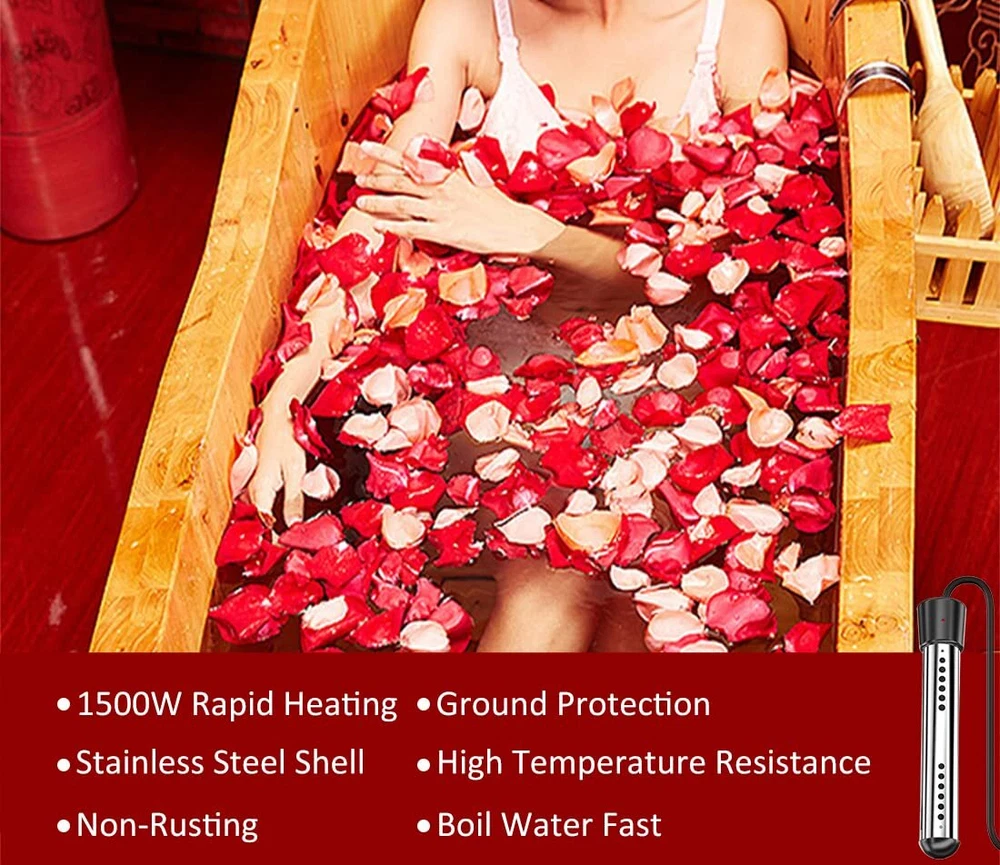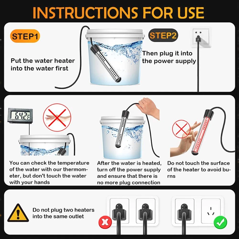 Pool Heater for Above Ground Pool, 1500W with Digital LCD Black Product Details Product Dimensions : 7.87 x 8.66 x 8.66 inches; 1.28 Pounds Item model number : TJDRRS230324 Manufacturer : Laisence Country of Origin : China Material: Stainless Steel Voltage: 120 Volts Brand: Laisence Color: Black Wattage: 1500 watts 【Safety and Practicality】The pool heater is equipped with a stainless steel sheath, which effectively prevents the heating element from directly touching the human body, making it safer. Heat is lost more quickly to the water through holes in the shield. It can boil five gallons of water in minutes. Please follow the instructions strictly! ! 【Easy to Use】First immerse the heater completely in water, and then connect the 120V power supply. Check the power indicator to ensure that the submersible water heater is working properly and that it will continue to heat the water. Suitable for any cold weather application 【Warning】Because of the high power of this product, please ensure that there are no quality problems in the circuit used! The heater must be fully submerged when working! Please take out the heater before touching the water! Do not use continuously for more than 3 hours! Do not plug two water heaters into the same socket to avoid fire. Suitable for basin, bucket, bathtub, mini inflatable pool and other containers, it can quickly make water hot, equipped with 1 digital thermometer, 1 stainless steel cleaning ball, 1 immersion water heater. It will be a great helper in winter and a great gift to give to your friends or family