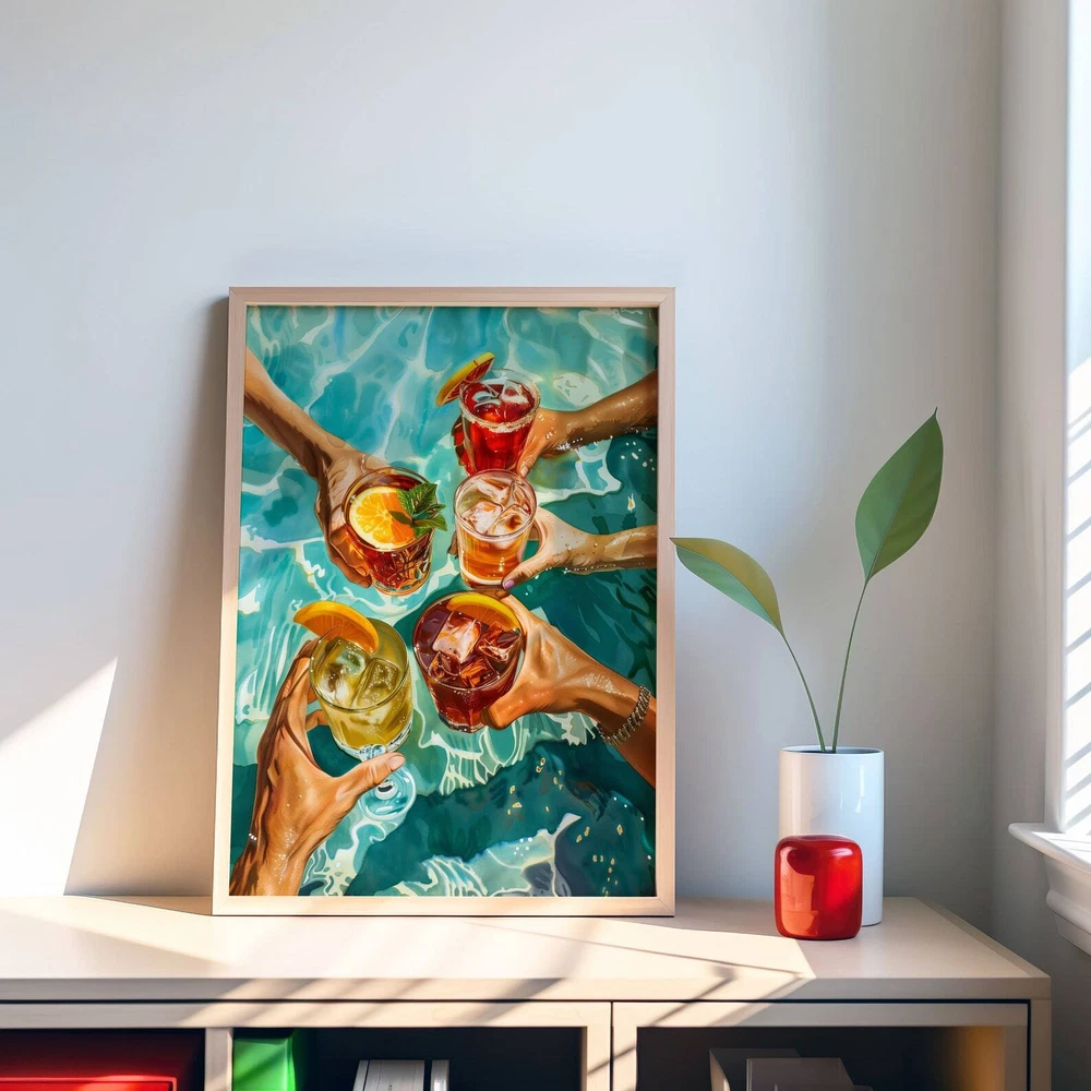 Poolside Cocktails Art Print Summer Drink Wall Art Material: Premium luster photo paper Print type: Inkjet printing One side printed + The finish provides the highest possible resolution and color saturation + Lasts up to 200 years in color and 400 years in black-and-white + Printed on high-quality resin-coated photo base paper medium + Posters can be hung with double-sided tape, tacks, or framed + Hand washing with a gentle cry cloth is recommended for extended durability I will hand select the best choice of paper for your chosen design to ensure top quality results for a beautiful, bright and luxurious print. All prints are sealed in cellophane slips for protection during transportation, and are shipped in a protective cardboard envelope.