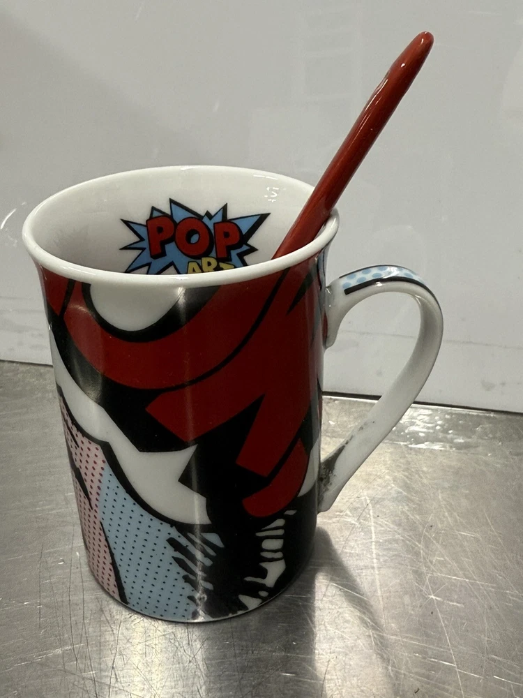 Pop Art Paul Cardew Coffee Mug Cup Modern Art Fine Casa With Matching Spoon