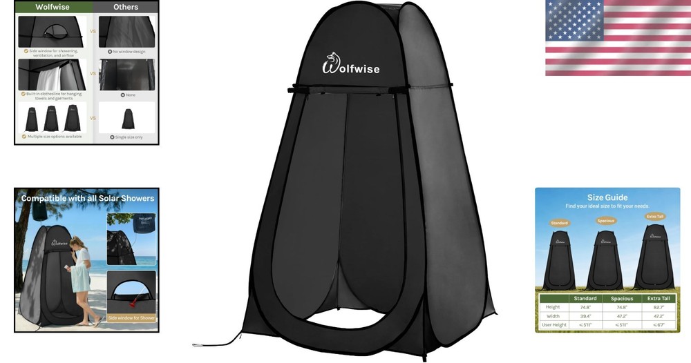 Pop Up Shower Tent with Ventilation, Portable Privacy Solution for Camping 40" ‹ › ‹ › ‹ › ‹ › ‹ › ‹ › ‹ › ‹ › ‹ › ‹ › Pop Up Shower Tent with Ventilation Ultimate Portable Privacy Solution for Camping Multi-Use Privacy Tent This versatile tent provides a secluded space for all your outdoor activities, ideal for use as a camp shower tent, portable toilet enclosure, changing room, or beach changing tent. Crafted from thick 190T polyester fabric, ensuring excellent water resistance and sun protection, perfect for any camping, beach, or outdoor environment. Easy Setup & Folding Experience the ease of instant pop-up design, allowing for setup by one person in about 10 seconds. Folds down effortlessly in under 1 minute and weighs only 5.7 lbs, making it easy to transport and store in your car trunk, under seats, or within your beach bag. Multiple Size Options Choose from three sizes: 6.2 ft H × 47 in W (recommended for users under 5'11"), 6.9 ft H × 47 in W (ideal for taller users), and 6.2 ft H × 39 in W (for a cozier fit). Convenient Features Equipped with a zippered side window for ventilation, making it comfortable for changing or toilet use. The window also allows a shower hose to pass through when used as a shower tent. An interior hanging line offers a handy spot for clothes or towels, ensuring convenience during your outdoor activities. Stable Structure Constructed with a galvanized steel frame to enhance rust resistance and stability. Includes 8 ground stakes and 4 wind ropes to secure the tent against wind and uneven outdoor conditions. Why choose our Pop Up Shower Tent? Embrace the freedom of privacy whenever and wherever you need it with our Pop Up Shower Tent. Whether you're camping, heading to the beach, or enjoying outdoor events, this tent delivers an elegant and functional solution to your privacy needs. With effortless setup, ample size options, and weather-resistant materials, it not only meets but exceeds expectations. Don’t let lack of privacy compromise your comfort – order your pop-up shower tent today and experience the outdoors without barriers! Shipping Free & Fast Shipping - We offer free shipping to most of the USA with a normal delivery time of 3-7 days. However, due to the current situation, additional delivery time (up to 3 weeks) may be required for some items. Alternative Carriers - We may use alternative carriers (e.g. USPS, FedEx, UPS, etc.) to ensure your package arrives safely and on time. Due to the use of multiple carriers, we are unable to provide a tracking number automatically. Handling Time - Orders are processed and shipped within 1-2 business days of receiving cleared payment. Shipping Restrictions - Shipping to Alaska, Hawaii, Puerto Rico, Guam, and other US territories may incur shipping charges or delivery restrictions. Please contact us before ordering, or your order can be refunded/cancelled. State Restrictions - There may be restrictions based on your state of purchase. For example, certain items may not be shipped to California due to state regulations. Contact for Tracking Updates - If you require tracking updates or have any concerns about the delivery of your order, please feel free to contact us, and we will be happy to assist you. Return 30-Day Hassle-Free Returns - We want you to be completely satisfied with your purchase. If you are not, you can return the item within 30 days of receiving it for a full refund or exchange. Easy Return Process - To start a return, simply contact us and we will provide you with a prepaid return shipping label and detailed instructions. Restocking Fee - There are no restocking fees for returns. However, the buyer is responsible for return shipping costs if the return is not due to a seller's error. Refund Processing Time - Refunds will be processed within 5 business days of receiving the returned item in its condition. Payment We accept all major credit cards, PayPal, and Apple Pay for your convenience. Your payment information is secure and encrypted to ensure a safe and seamless transaction. Please complete your payment within 3 days of purchase to avoid any delays in shipping. Feedback Your feedback is extremely important to us. We strive to provide the best products and customer service possible. If you are satisfied with your purchase, please take a moment to leave us a positive review. If you have any concerns or issues with your order, please contact us before leaving negative feedback. We are committed to resolving any problems and ensuring your satisfaction. Contact Us If you have any questions or concerns, please feel free to out to our customer support team. You can contact us through the eBay messaging system. We are available Monday to Friday, 9:00 am to 5:00 pm EST, and we will do our best to respond to your inquiry within 24 hours. Buy it now and enjoy a pleasant shopping experience! Model: Portable Shower Tent Window Dimensions: Portable Shower Tent Unit Quantity: 1.0 count Features: Carrying Case,Detachable Groundsheet,Heavy Duty,High Altitude,Inflatable,Lantern Hook,Lightweight,Mesh Screen,Mosquito Net,Organizer Pockets,Pop-Up,Portable,Rod Holder,Screen/Shade,Sun Canopy,Ultralight,UV Resistant,Water Column,Waterproof,Window,Ventilation Window,Instant Setup,Easy Folding,Sun Protection,Water Resistance Material: Polyester,190T Polyester,T-Spun Polyester Type: Shower Tent Capacity: 1 Person Number of Doors: 1 Number of Windows: 1 Number of Seasons: General Use Shape: Square Color: Black Size: Standard Waterproof Rating: Not Specified Weight: 5.7 lb