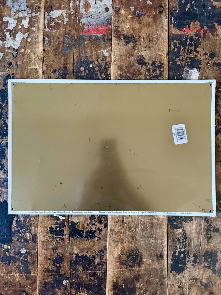 Popsicle Good ‘N Cool Tin Desperate Sign US Made Advertising Popsicle Pete 2002 16”W x 10.5H 2002 Good Humor-Breyers Ice Cream Licensed Item is used and shows signs of age, use and wear Please review photos and ask questions for best condition description