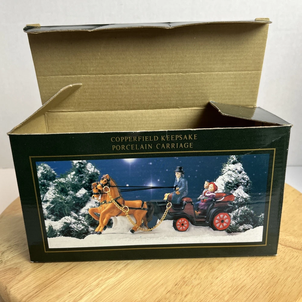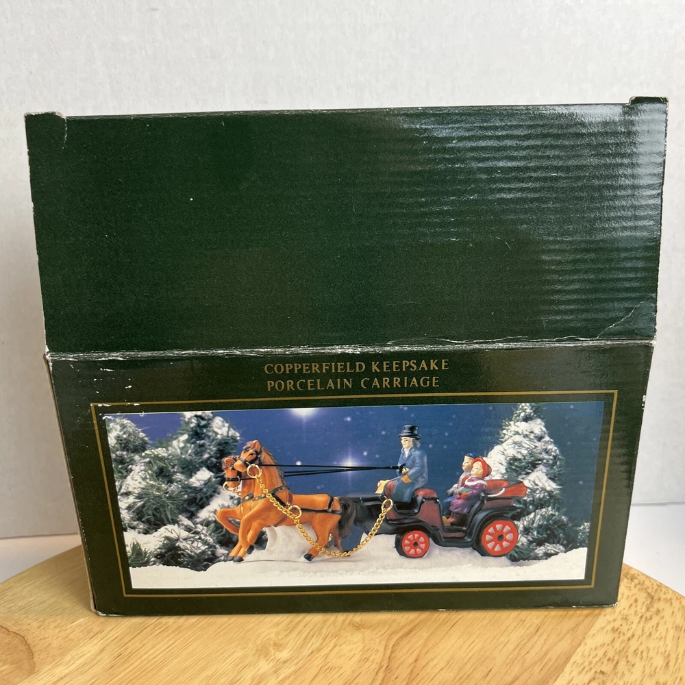 Porcelain Carriage w Horses Copperfield Keepsake 7”L Christmas Village Decor TM1011 Box Included Length 7”