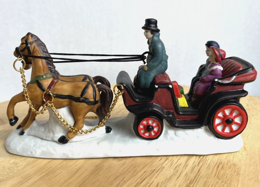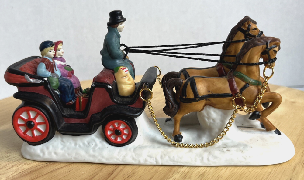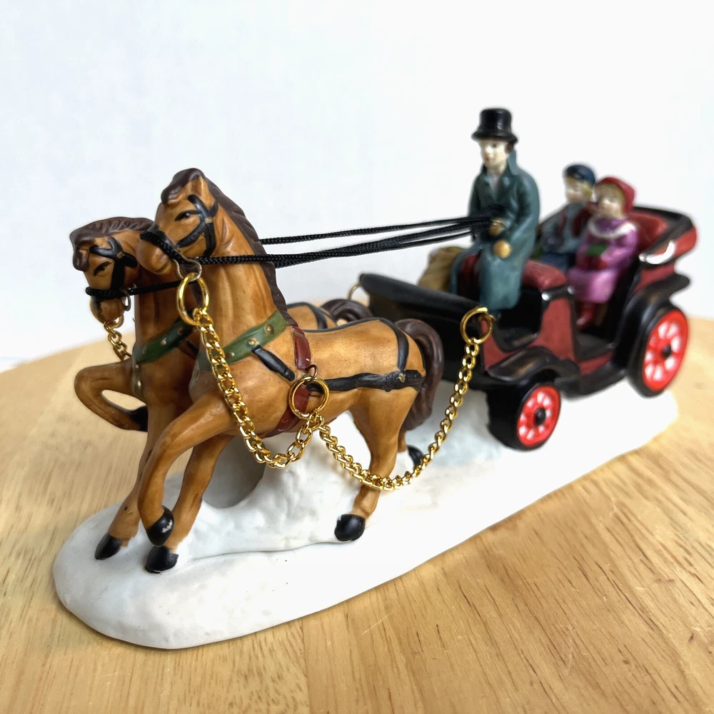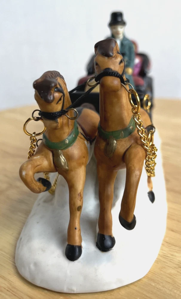 HomePorcelain Carriage w Horses Copperfield Keepsake 7”L Christmas Village Decor