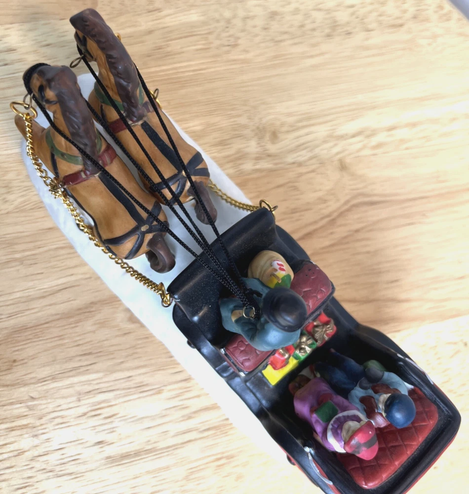 Porcelain Carriage w Horses Copperfield Keepsake 7”L Christmas Village Decor