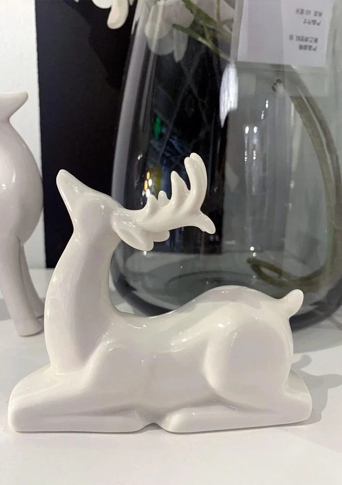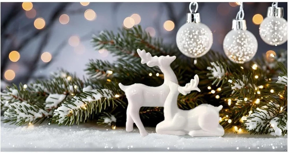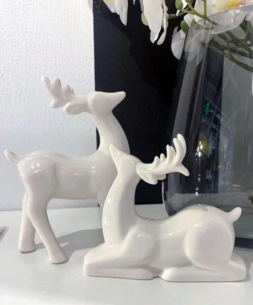 Porcelain Christmas Reindeer Figurines, Pack 2 Mini Animal Reindeer Decor Deer Statues Sculpture Tabletop Ornaments for Cabinet Mantel Shelves Fireplace Home Décor Accents Collectible Figurines Product Details Product Dimensions: 3.75 x 1.75 x 5.25 inches Item Weight: 13.7 ounces Manufacturer: KiaoTime Country of Origin: China Specific instructions for use: Christmas,Home Décor Finish types: Ceramic Number of pieces: 2 Batteries required: No Included Components: Set of 2 Pcs x Reindeer Figurine(Standing + Sitting) 【High Quality】The Tabletop Christmas Reindeer is crafted of Ceramic and with all white color which makes it beautiful and special. Delicate craftsmanship, Solid structure and high quality, eco-friendly 【Exquisite Design】Christmas Reindeer figurine, all white design with true-to-life details, appealing color, and active poses, adds peace and beauty to any setting 【BEAUTIFUL REINDEER】Add the festivities of the holidays to your home, office, classroom and more. Looking for something unique but elegant for this year’s Christmas decor? Want an item that can add a magical and traditional spirit to your decorations? This Christmas Reindeer Figurine can perfectly help you with that 【Application】Deer christmas decor suitable for indoor or outdoor decoration, like bookshelves, bedside tables, countertop, cake topper, home, office, café, nursery room, Tiered Tray and so on 【Patented products:】- Standing deer: 5.25inches Height by 3.75 inches Width. Sitting Deer: 3.5inches Height by 4.25 inches Width. The reindeer sculpture is perfect gifts for family and friends at Birthday, Christmas, and New Year. The design of this product is patented.
