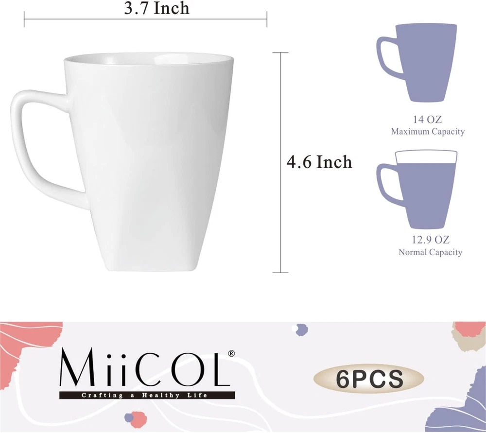 Store New Arrivals Add to Favorite View Feedback Contact Porcelain Coffee Mugs Set of 6, Large Coffee Cups 14 Oz, White Tea Cups, Ceramic Mugs for Latte, Cappuccino, Milk, Cocoa, Square Bottom, Microwave & Dishwasher Safe Description Item model number 14-SQUARE Reusability Reusable Style Modern Number of Items 1 Pattern Pure White Country of Origin China Theme Daily Use Unit Count 6 Count Product Dimensions 3.7"W x 4.6"H Age Range (Description) Adult Finish Type Clear Glaze Specific Uses For Product Cold Drinks, Hot Drinks Included Components Coffee Mugs Material Porcelain, Ceramic Capacity 400 Centiliters Occasion Dining Item Weight 2.4 Kilograms Item Weight 5.28 pounds Material Feature Por, Microwave Safe Material Type Free Cadmium Free, Lead Free Special Feature Oven Safe, Durable, Microwave Safe, Dishwasher Safe, Scratch Resistant Color White Shape Square Recommended Uses For Product Home Product Care Instructions Microwave Safe, Dishwasher Safe Size 6 Count (Pack of 1) Large Capacity: Each mug can hold up to 400 mL(Capacity:14 oz, Dimension:Ø3.7 x H4.6 inch), providing plenty of room for your favorite beverage like coffee, cocoa, tea, milk, and juice Premium Quality: Crafted from high-quality porcelain, Miicol coffee mugs are sturdy and durable(Weight:0.4 kg per piece), ensuring long-lasting use Stylish and Practical: The sleek white design with a square bottom adds a touch of elegance to your coffee or tea time. The handle offers a comfortable grip, making it easy to hold and enjoy hot drinks Convenient and Safe: The cups are microwave and dishwasher safe for your convenience; The smooth, glazed surface is easy to clean and prevents any unwanted stains or odours Well Packaged: Each set of coffee mugs is carefully packaged to ensure they arrive in perfect condition Product Description Heavy Texture Comfortable Grip Pure White Ceramics Microwave/Oven Safe Dishwasher/Freezer Safe 14oz Porcelain Coffee Mugs Set of 6 Enjoy a nice coffee break! The sleek white design with a square bottom adds a touch of elegance to your coffee or tea time. Suitable for family leisure moment, friends party, or business meeting, Miicol white mugs with classic and modern design would improve your drinking satisfaction. Ideal for coffee, tea, cocoa, milk, juice, or hot drinks. Ø 3.7 x H 4.6 inch 0.4 kg/pc Set of 6 Large Capacity:14 oz Versatile Uses MiiCOL Porcelain Coffee Mugs are thick in texture, have a large 14oz capacity and are versatile enough to be used in a variety of settings such as at home, restaurants, cafes and more. Suitable for all hot and cold drinks including coffee, cocoa, milk, juice and other beverages. Good Quality & Safe Miicol insists on using food grade ceramics to provide you with healthy and safe food. All dishes are made of durable white porcelain that is heat resistant, microwave safe and sturdy. It is also easy to clean in the dishwasher or by hand. Our coffee mug has a comfortable handle for easy gripping. Convenient and Practical Whether you are working or relaxing, use our ceramic mugs for a pleasant drinking experience! Please note before you buy, our coffee mugs are thick quality and weigh 0.4kg/0.88lbs each. A set of 6 is included and we carefully pack the mugs to ensure they are protected during shipping. ABOUT US We offer the best prices around on high quality products. Our E-store includes media such as books, movies, music and games while offering electronics, toys, sporting apparel, clothing, tools, general home, garden items and more. SHIPPING We are always working hard to ensure your package arrives as soon as possible. Please understand that some factors like weather, high postal traffic, and the performance of shipping companies are outside of our control. We offer free shipping to the lower 48 states and ship within 2 business days of payment, usually sooner. We do not accept P.O. Boxes. Please provide a physical address. For shipping outside of the continental USA, we only use eBay's Global Shipping Program.The item is shipped to KY and then sent to the rest of the world. International customers are responsible for all duties and taxes. Continue to check out in order to calculate costs for shipping the item to your country. Messages regarding eBay's Global Shipping Program MUST be directed at eBay EXCLUSIVELY. RETURNS We offer a 30-Day Return Policy on items which you are not completely satisfied with. You have the option for a full-refund or an exchange of the item. No returns are available on items shipped outside of the USA. PAYMENT We accept PayPal. CONTACT US This page content is yet to come Please ad us to your favorite seller and visit again later Thank You CUSTOMER SATISFACTION We try our very best to make sure every customer is completely satisfied. If there's a problem, message us! We're happy to help. WE ACCEPT Copyright © 2021 AutoDS. | All Rights Reserved