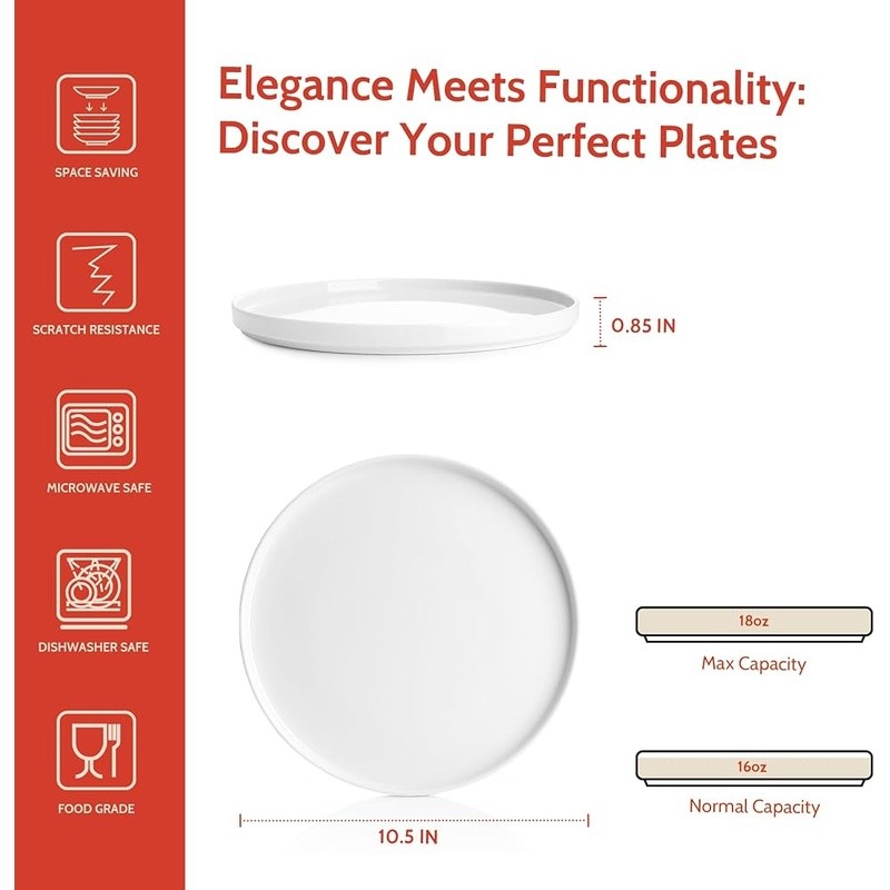 Cozy Electric Heating Blanket Faux Fur Soft Warm Throw Home Office Use 66.69 USD Free shipping 10 Piece Glass Mixing Bowls Set W/ Lids Food Storage Prep Serving Dish New 22.87 USD Free shipping Soft Heated Blanket Twin Sherpa Electric Auto Off 5 Heat Settings Comfortable US 57.99 USD Free shipping Little Debbie Christmas Tree Cake Scented Candle 3-Wick Soy Wax 45 Hr Burn New 23.85 USD Free shipping Electric Heated Blanket Soft Warm Auto-Off 5 Heat Settings Safe Eco-Friendly New 53.99 USD Free shipping Funny Inflatable Christmas Dog Peeing on Snowman W/ LED Lights Yard Decor New 57.89 USD Free shipping Wet Dog Food Chopped Ground Dinner Beef Canned Adult Nutrition 4 Pack 22oz Cans 17.5 USD Free shipping Professional Handheld Seed Spreader Bag Seeder 25lbs Capacity W/ Waterproof Bag 66.31 USD Free shipping Prismatic Iridescent Christmas Snowflake LED Decoration Kids Room Indoor New 42.48 USD Free shipping Adjustable Steel Closet Rod Multiuse Organizer Clothes Hangers Storage Solutions 20.86 USD Free shipping Organic Split Pea Soup Light Sodium Vegan Canned Soup 2 Pack Healthy Meal New 13.89 USD Free shipping 300ct Baby Wipes Light Fresh Chamomile Hypoallergenic Soft Thick Resealable New 13.06 USD Free shipping About this item EXCELLENT MULTI-PURPOSE PLATES: The kitchen is a place of love and connection. We believe the 10.5 inch high-edge dinner plates cradles not just food, but the love, care, and memories that come with each shared meal. Ideal for steak, pasta, pizza, pancakes, seafood, or any main course and fruit, these versatile dishes are perfect for daily use or parties. They also make a thoughtful housewarming gift for friends or family. HANDCRAFTED HIGH-EDGE DESIGN: Our all-natural glazed plates are crafted in beautiful colors, with a unique high-edge and curved-wall design that redefines elegance and practicality. These plates are easier to hold, and the raised edges prevent any sauce from spilling. Perfect for everyday family dinners and special occasions, they are a must-have for every American home and restaurant. ELEGANT & CONVENIENT DESIGN: Elevate your dining experience with Circular Collection, which is a testament to your impeccable taste. Professionally crafted to stack seamlessly, these flat dinner plates save space and fit perfectly in your cabinets or shelves. These plates make every meal look more appetizing while adding a touch of elegance to your daily dining experience DISHWASHER, MICROWAVE & OVEN SAFE: porcelain dishes can withstand high temperatures of up to 356℉! Food-safe standards ensure that your favorite dishes remain delicious and unaltered, free from harmful substances or odors. Easy clean-up is a breeze! These dishes are built to last, resistant to scratches and wear. Pop them in the dishwasher, and they emerge sparkling and ready for your next culinary masterpiece. We understand that purchasing dinnerware marks the beginning of a new chapter in life, so we take this trust seriously. Material: Porcelain Brand: Color: White Special Feature: Dishwasher Safe Style: Classic You may also like Durable Polypropylene Exercise Club Strength Training Mace Flexibility Workout 51.89 USD Free shipping Heavy Duty Garage Storage Organizer Steel Wall Mount Kit W/ Hooks & Slot Boards 57.89 USD Free shipping Cat Scratching Pad Catnip Infused Multi Angle Scratcher Happy Healthy Cats New 35.33 USD Free shipping Elegant PU Leather Tissue Box Cover Modern Decor Fits Standard Tissues New 16.98 USD Free shipping Collapsible Portable Sink 10qt Lightweight Plastic Wash Basin Camping Outdoor US 20.03 USD Free shipping Super Soft Microfiber Reversible Quilt Floral Patchwork Bedding Set 3 Pieces New 48.64 USD Free shipping Heated Blanket Flannel Sherpa Electric Blanket 8 Heat Settings Auto Shut Off New 50.98 USD Free shipping 4-Tier Media Stand W/ Charging Station USB AC Outlets Mobile Storage Wheels 121.48 USD Free shipping Effective Surface Cleaning Wipes Home Kitchen Bathroom 72 Pack Fresh Scent New 94.39 USD Free shipping All-in-One Soldering Station W/ 5X Magnifying Lamp Magnetic Vise & Flexible Arms 121.48 USD Free shipping Weighted Exercise Bar Strength Training Yoga Pilates Fitness Home Workouts New 40.78 USD Free shipping Wicker Storage Baskets W/ Lids Removable Liners Folding Organizers Home Use 66.59 USD Free shipping