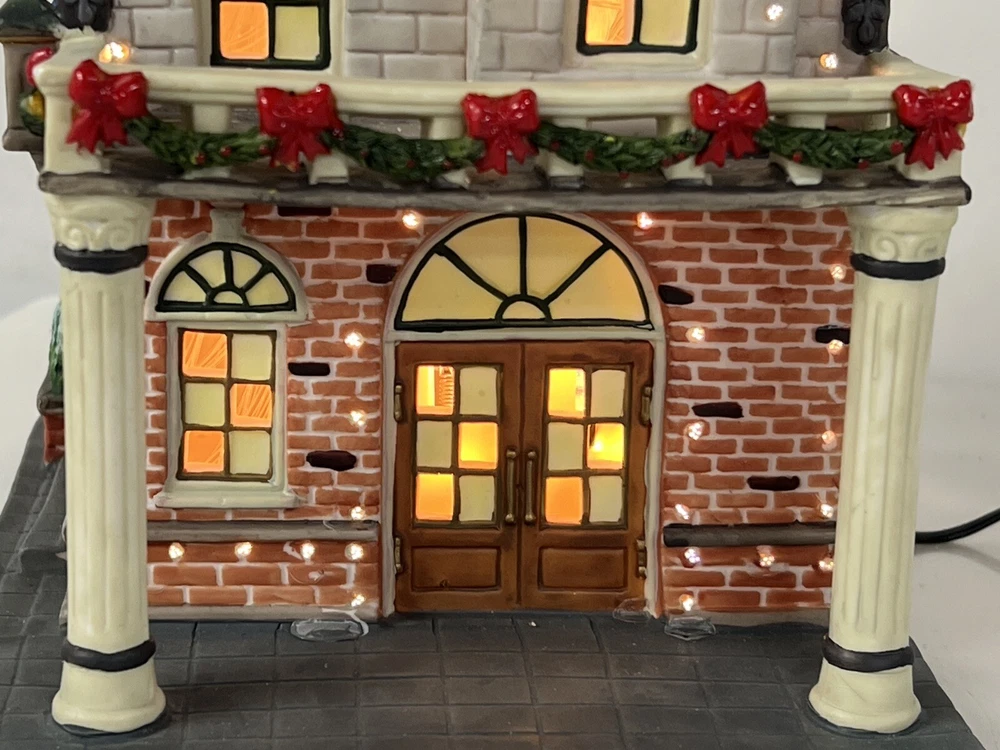 This is a medium-sized O’Well Novelty porcelain Christmas village piece from 2005. It features an illuminated, color-changing 3D effect of a whimsical fiber optic police station. The hand-painted, American-style house is suitable for seasonal display in any room. It comes in a box with a 12-volt adapter, part of the Deluxe Fibre Optic House collection. Perfect for collectors of holiday decor. Absolutely perfect pristine condition! Color changing lights , incredible detail , comes with power cord , all original packaging and original box ! Just a beautiful piece to display.