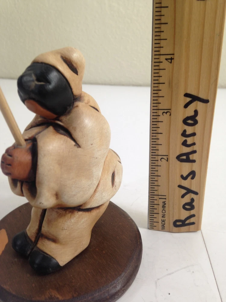 This unique sculpture features a fisherman wearing a black mask and holding a fishing pole. The porcelain material provides a distinct texture that complements the beige color and matte finish. The sculpture is crafted using stoneware, terracotta, and ceramic materials, and features an abstract design that adds a touch of novelty to any space. The sculpture is perfect for all occasions and can be used as a decorative collectible or a standalone piece. The originality and unknown origin of the sculpture make it a rare find for collectors who appreciate unique works of art. This piece will make a great addition to any collection or an eye-catching decorative item for your home. I tried to find out what character this was or who manufactured it. The only one similar was on an Italian Pizzaria website. If you know what the origin of this sculpture is message me and let me know. Thank you for your interest. R C24 See my eBay store for all my other listings. Follow me to keep updated with new ones.