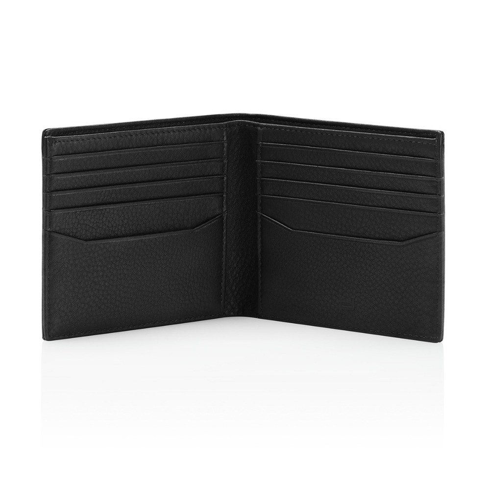 Porsche Design Business Wallet 10cc Wide in black leather Porsche Design Business Man Wallet 10cc Wide in black leather 4056487000725 Wallet in soft, fine leather with natural embossing, the Porsche Design Business collection impresses with its timeless appearance and durability. The stitched edges, the embossed Porsche Design logo and the distinctive V-Line design detail subtly reveal the unique craftsmanship behind the items in this series. The Porsche Design Business Billfold 10 Wide portfolio is also distinguished by its even larger format and spacious and functional interior. With ten credit card slots, two bill compartments and two more larger, eg. for business cards, this wallet offers space for all your important cards and receipts. DETAILS Classic card holder in business style Soft embossed leather with stitched edges and embossed Porsche Design logo 10 credit card slots Double compartment for banknotes RFID protection Dimensions : 95mm x 125mm x 15mm Weight : 100g Lining material : 100% cowhide, lining: 100% polyester Packaging : box, certified dust bag and warranty OSO09900.001Black95mm x 125mm x 15mmPorsche DesignLeatherMan/Woman