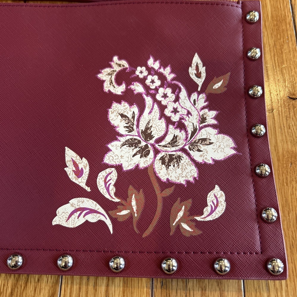 White House Black Market Port Wine Floral Silver Studded Clutch Purse Bag Wristlet Measures 12” x 8” Excellent mint condition from a smoke free home. Inventory tje