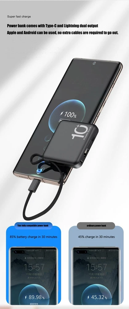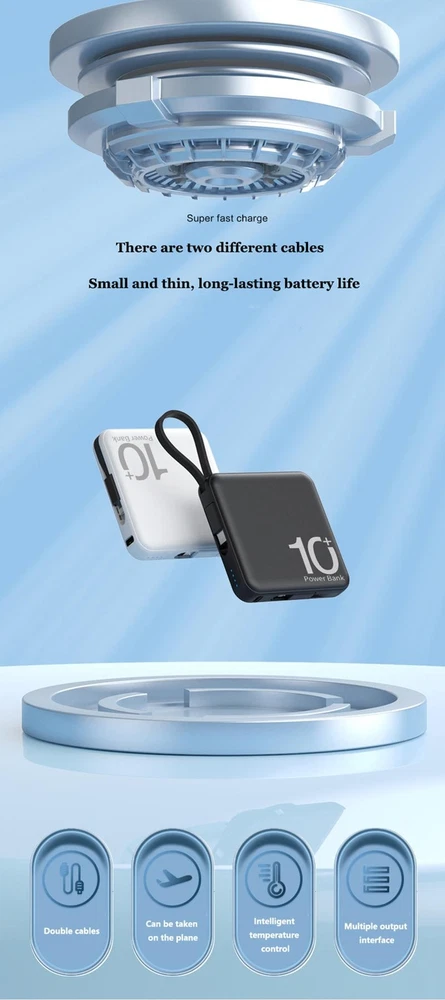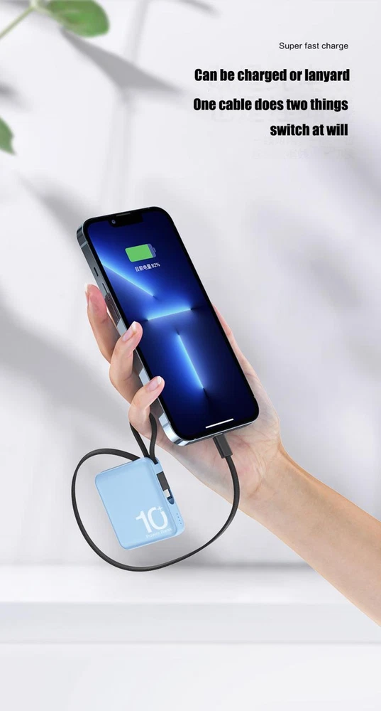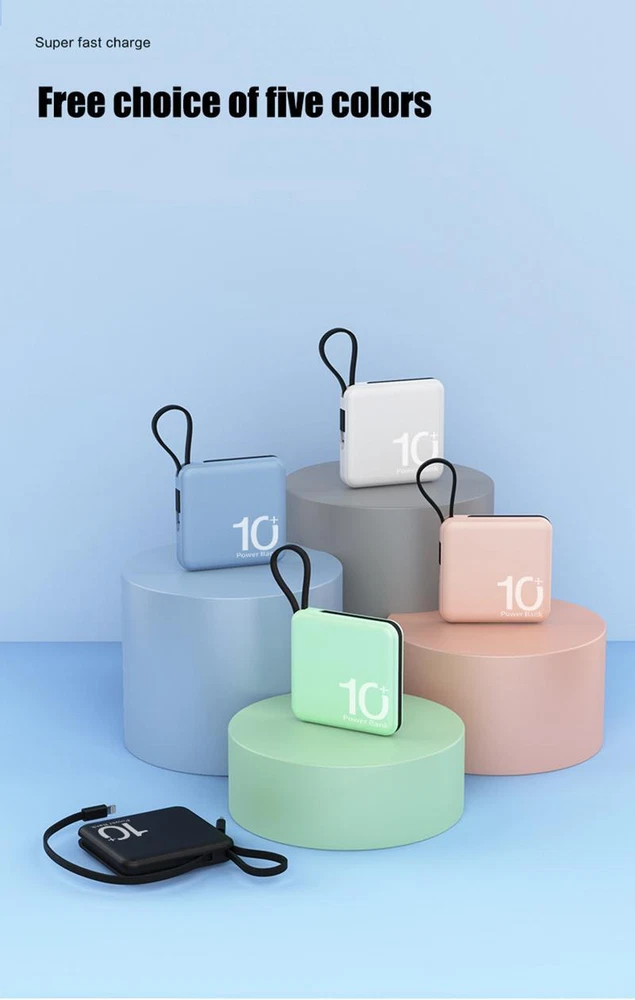 Free and fast shipping , shipping take up 1-7 Business Days 30 Day Return Accepted EASY PAYMENT via PayPal, Credit Card, PayPal Credit, Google Pay... Power Bank 10000mah Mobile Phone Plastic Mini Multicolor 2-usb 5v Backup 10w Друзям в Україні зверніть увагу:оскільки логістика " Standard Shipping" не може транспортувати чисту електричну продукцію, тому я буду використовувати інші чисті електричні логістичні транспортні продукти після того, як ви купите товар, якщо у вас виникнуть запитання, ви можете проконсультуватися з продавцем, дякую 10000mAh Portable Power Bank built-in Type-C & lightning cable 5000mah 22.5W Fast Charging External Auxiliary Battery Powerbank for iPhone 15 14 13 Samsung Xiaomi HUAWEI [Product capacity] :10000mAh 5000mAh 5000mAh parameters TYPE - C input: 5 v / 2 a Type-c comes with the cable output :5V/2A LIGHTING comes with wire output :5V/2A Battery capacity :5000mah Rated capacity :3000mah Weight :97.6g(bare) 138G (with color box) Product Size: 64.6 * 62.8 * 18 mm 10000mAh parameters: TYPE - Cinput: 5 v / 2 a Type-c has a built-in cable output :5V/2A LIGHTING comes with wire output :5V/2A Battery capacity :10000mah Rated capacity :6000mah Weight :170.5g(bare)212G(with color box) Product Size:64.6 * 62.8 * 32 mm Material: ABS + PC Color: Black, white, pink, blue, green [Standard configuration] : packaging +machine + data cable + manual REVIEWS The product came very well packaged. I'm very happy. thank you for everything. Seller strongly recommended. This is great! I definitely recommend! Product looks amazing Delivery was fast. Excellent seller, great communication. I advise everyone to buy it!