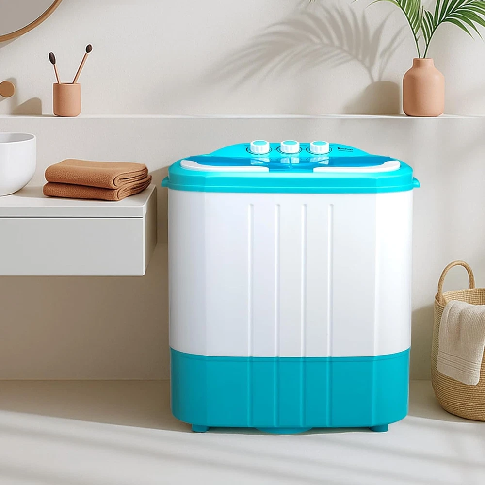 Product Description About this item Twin Tub Design - Portable washer dryer combo is designed with dual-tub dual-function design, which can wash and spin-dry clothes at the same time, providing great convenience, the twin tub design can meet your different needs Easy to Operate - Portable washer offers a simple and easy to understand operation panel, wash timer, wash option/drain option, spin timer for easier use. Allowing you to simply put in your laundry, fill it with water, and set the timer to start the wash Mini & High Power - Washing machine is equipped with a 245-watt high-powered motor and has a wash capacity of 7.7 lbs. The spin dry capacity is 2.2 pounds with a 125 watt high powered motor Compact & Lightweight - Mini washer and dryer combo's space-saving design makes it easy to move around. Ideal for single occupancy homes or homes with limited storage space Durable & Reliable - Washer machine is made of high quality materials and a powerful motor for long lasting performance without a lot of noise during use Portable Washing Machine 10LBS Tips : This washing machine does not come with a drain pump and must rely on gravity to drain.