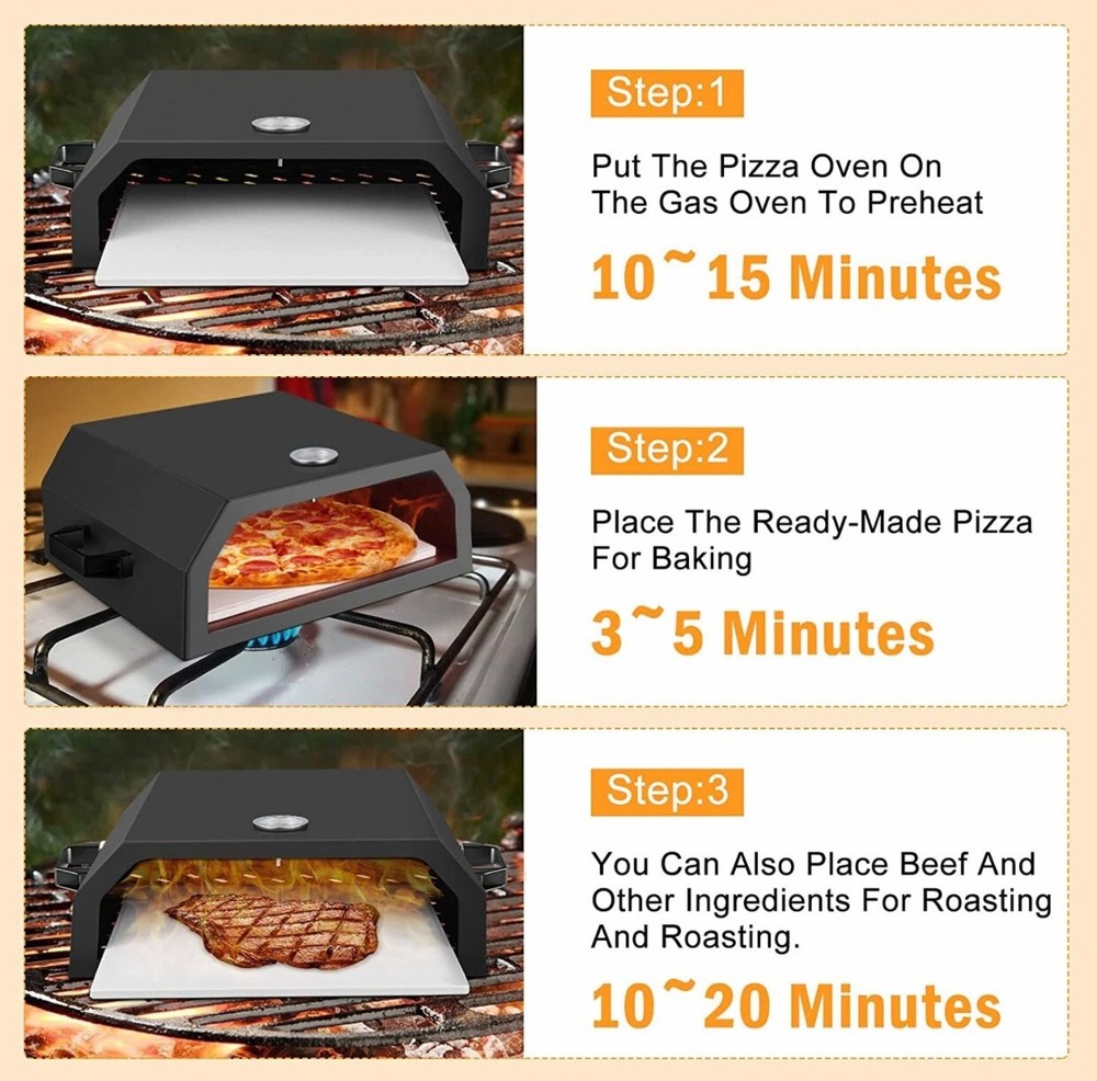 Portable Stainless Steel Pizza Oven Kit with Shovel for Gas Stoves