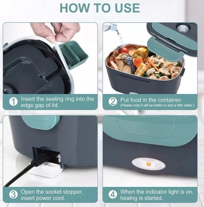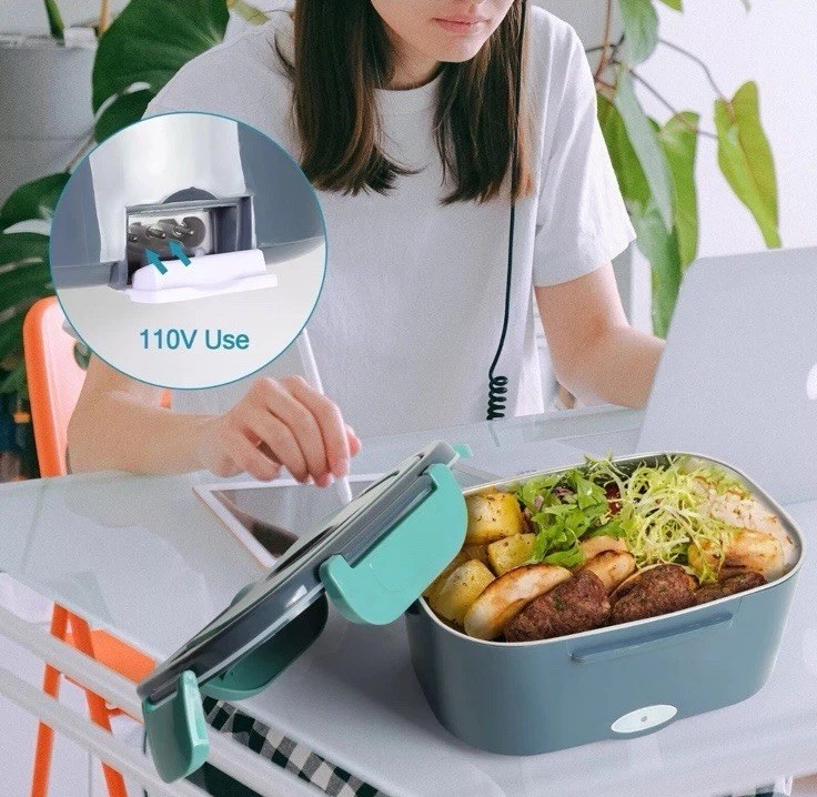 The 1.5L Electric Heating Lunch Box is a portable and stylish container designed for use in cars or offices. The lunch box is made of durable plastic and stainless steel, making it both reusable. lunch box is waterproof and dishwasher safe.