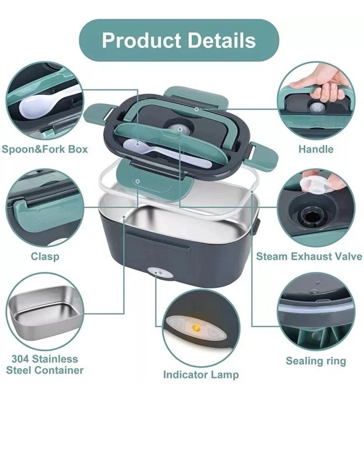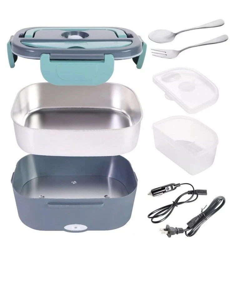 Features: Dishwasher Safe, Easy Clean, Easy to Clean, Multipurpose, Reusable, Waterproof, With Handle, With Lid, Portable Set Includes: Fork, Insert, Lid, Spoon, Container, Power Cord UPC: Does not apply Department: Unisex gtin13: Does not apply Number of Items in Set: 8 Heating Time: 25-50min Color: Green Model: Car Electric Heating Lunch Box Theme: Cars Style: Modern Number of Compartments: 2 Item Height: 4.3 in Item Width: 9.3 in Brand: Unbranded Shape: Rectangle Material: Plastic, Stainless Steel Lid Type: Vented Lid MPN: Does not apply Power: 110V/12V Capacity: 1.5L Pattern: Solid Type: Lunch Box