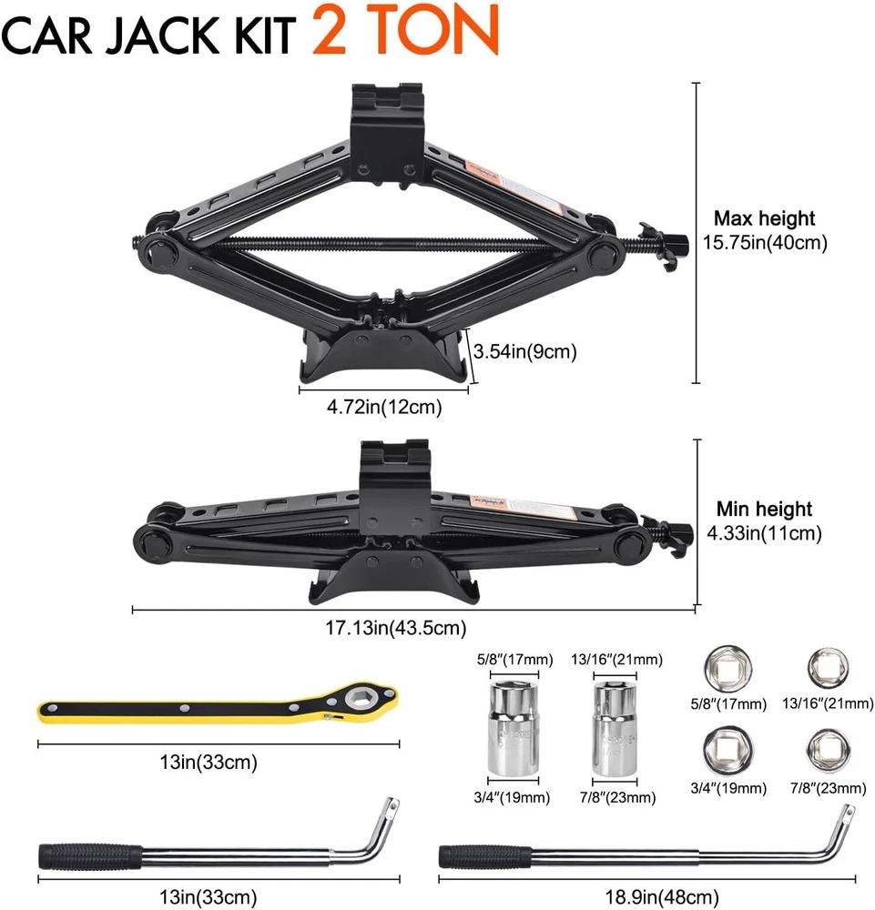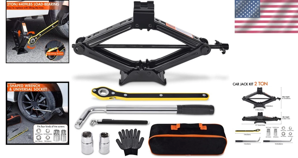 Portable 2 Ton Scissor Jack with Full Tire Changing Accessories for Vehicles ‹ › ‹ › ‹ › ‹ › ‹ › ‹ › ‹ › ‹ › ‹ › Portable 2 Ton Scissor Jack with Full Tire Changing Accessories Enhance your roadside assistance experience with our comprehensive Portable 2 Ton Scissor Jack, designed for effortless lifting and tire changing. This all-inclusive accessory can be your reliable partner during emergencies. Features: Car Jack Capacity: Maximum lifting weight of 2 Ton (4409 lbs), with a lifting range from 4.33" (11cm) to 15.75" (40cm), making it suitable for both low chassis sedans and high-body SUVs. Complete Tire Replacement Kit: Includes 1x 2T Scissor Jack, 1x Ratchet Wrench, 1x Lug Wrench (17/19mm 21/23mm), 1x set of Gloves, 1x Pencil Tire Pressure Gauge, and a convenient Storage Bag. Stable and Secure: Crafted from high-quality materials, our car jack is built to withstand heavy use. The corrosion-resistant construction ensures durability in all weather conditions. Easy to Use: The scissor jack features a user-friendly design, while the lug wrench is engineered for a comfortable grip and maximum leverage - allowing quick and efficient tire changes. Universal Car Emergency Kit: Compatible with cars, SUVs, and various vehicles, this kit is ideal for addressing flat tires, stuck wheels, or any other vehicle repair needs. Benefits: Robust lifting power with a wide range to accommodate different vehicles. All-in-one kit ensures you have everything needed for emergency tire changes. Enhanced safety and stability, providing peace of mind while using. Durable materials offer long-lasting service regardless of environmental conditions. Effortless emergency repairs ensuring you're back on the road quickly. Why Choose Our Portable 2 Ton Scissor Jack? Stay prepared for the unexpected with our Portable 2 Ton Scissor Jack, engineered for ease of use and reliable performance. Whether you're handling a flat tire or performing routine vehicle maintenance, this universal car emergency kit has everything you need. Don't compromise on safety or convenience; invest in our scissor jack kit and ensure you are always ready for the road ahead. Make every journey worry-free - order your Portable 2 Ton Scissor Jack today! Shipping Free & Fast Shipping - We offer free shipping to most of the USA with a normal delivery time of 3-7 days. However, due to the current situation, additional delivery time (up to 3 weeks) may be required for some items. Alternative Carriers - We may use alternative carriers (e.g. USPS, FedEx, UPS, etc.) to ensure your package arrives safely and on time. Due to the use of multiple carriers, we are unable to provide a tracking number automatically. Handling Time - Orders are processed and shipped within 1-2 business days of receiving cleared payment. Shipping Restrictions - Shipping to Alaska, Hawaii, Puerto Rico, Guam, and other US territories may incur shipping charges or delivery restrictions. Please contact us before ordering, or your order can be refunded/cancelled. State Restrictions - There may be restrictions based on your state of purchase. For example, certain items may not be shipped to California due to state regulations. Contact for Tracking Updates - If you require tracking updates or have any concerns about the delivery of your order, please feel free to contact us, and we will be happy to assist you. Return 30-Day Hassle-Free Returns - We want you to be completely satisfied with your purchase. If you are not, you can return the item within 30 days of receiving it for a full refund or exchange. Easy Return Process - To start a return, simply contact us and we will provide you with a prepaid return shipping label and detailed instructions. Restocking Fee - There are no restocking fees for returns. However, the buyer is responsible for return shipping costs if the return is not due to a seller's error. Refund Processing Time - Refunds will be processed within 5 business days of receiving the returned item in its original condition. Payment We accept all major credit cards, PayPal, and Apple Pay for your convenience. Your payment information is secure and encrypted to ensure a safe and seamless transaction. Please complete your payment within 3 days of purchase to avoid any delays in shipping. Feedback Your feedback is extremely important to us. We strive to provide the best products and customer service possible. If you are satisfied with your purchase, please take a moment to leave us a positive review. If you have any concerns or issues with your order, please contact us before leaving negative feedback. We are committed to resolving any problems and ensuring your satisfaction. Contact Us If you have any questions or concerns, please feel free to reach out to our customer support team. You can contact us through the eBay messaging system. We are available Monday to Friday, 9:00 am to 5:00 pm EST, and we will do our best to respond to your inquiry within 24 hours. Thank you for supporting our small family business! Manufacturer Part Number: Car Jack Kit UPC: Not Set Unit Quantity: 2 Vehicle Type: Passenger Vehicle,Car,SUV Brand: Unbranded Type: Scissor Jack Number of Pieces: 6 Drive: Manual Material: Steel Capacity per Stand: 4409lbs. Warranty: Unspecified Length Minimum Height: Not Set Maximum Lift Height: Not Set Country/Region of Manufacture: Not Set Unit Type: lb Set or Single Item: Not Set