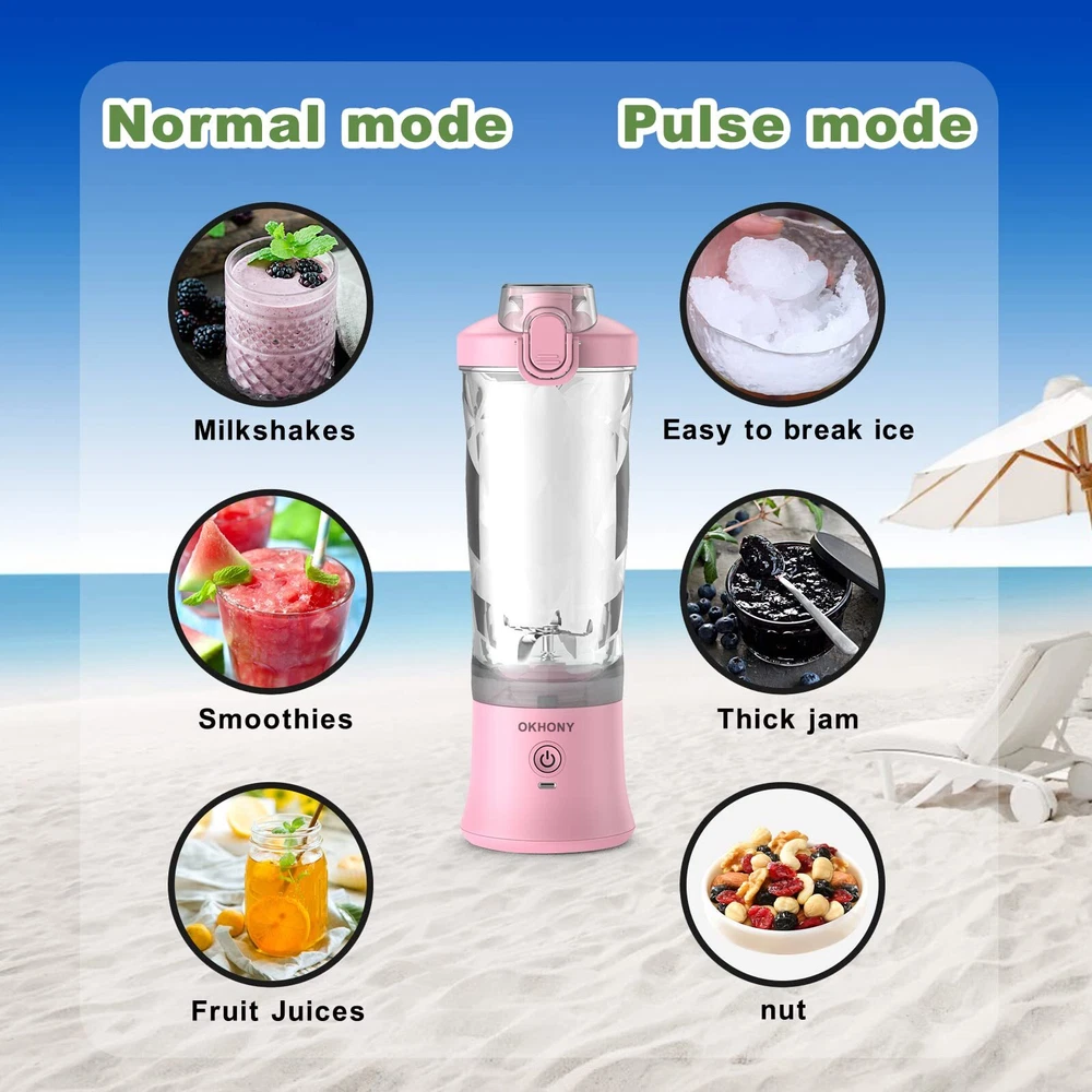 【Powerful 270W Smoothie Blender】Upgrade your blending game with our 270-watt copper casting motor. It rotates at 18,000 rpm, crushing ice, fruits, and veggies effortlessly. Enjoy nutritious shakes and smoothies in just 30 seconds! (Don't blend while charging.) 【Blend/Pulse Mode】One click for Blend mode, perfect for bananas, strawberries, and ice cubes. Get smoothies, shakes, and mixed drinks in just 30 seconds! Double-click for powerful Pulse mode, great for salsas, jams, and frozen fruits. Lights flash yellow to indicate Pulse mode. Control blending time as needed! *Pulse mode switches to Blend mode after 5 seconds of inactivity. 【Blend On The Go】Designed with a sports bottle cap and carry loop, our portable blender comes with an extra bottom cap, leather keychain handle, and cup brush. It has a 20oz capacity, weighs only 1.4lbs, while the sports bottle weighs 0.6lbs. BPA-free and dishwasher safe (excluding blender part). Perfect for indoor/outdoor use, travel, sports, or on-the-go. Replace the cap after blending and enjoy your drinks anytime, anywhere! 【LED Light & Waterproof Design】The portable blender features a TypeC charge port and 12 LED lights to show battery status and blending modes. More green lights mean higher battery level, while more red lights indicate lower battery. Blending made easy! Take your blender to the sink or the pool without worrying about spills or even submersion in water. 【Perfect Gift & 12 Months Warranty】Our stylish smoothie blender makes a perfect gift for friends, family, or yourself! Its diamond-cut texture shines under the sun. Package includes 1 blender, 1 bottom cap, 1 cup brush, and straw brush, 1 charging cable & manual. Enjoy our 12-month exchange/money-back guarantee and lifetime technical support. Contact us if you have any questions. Elevate your blending experience now!