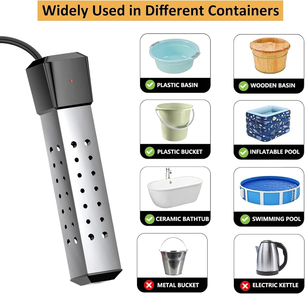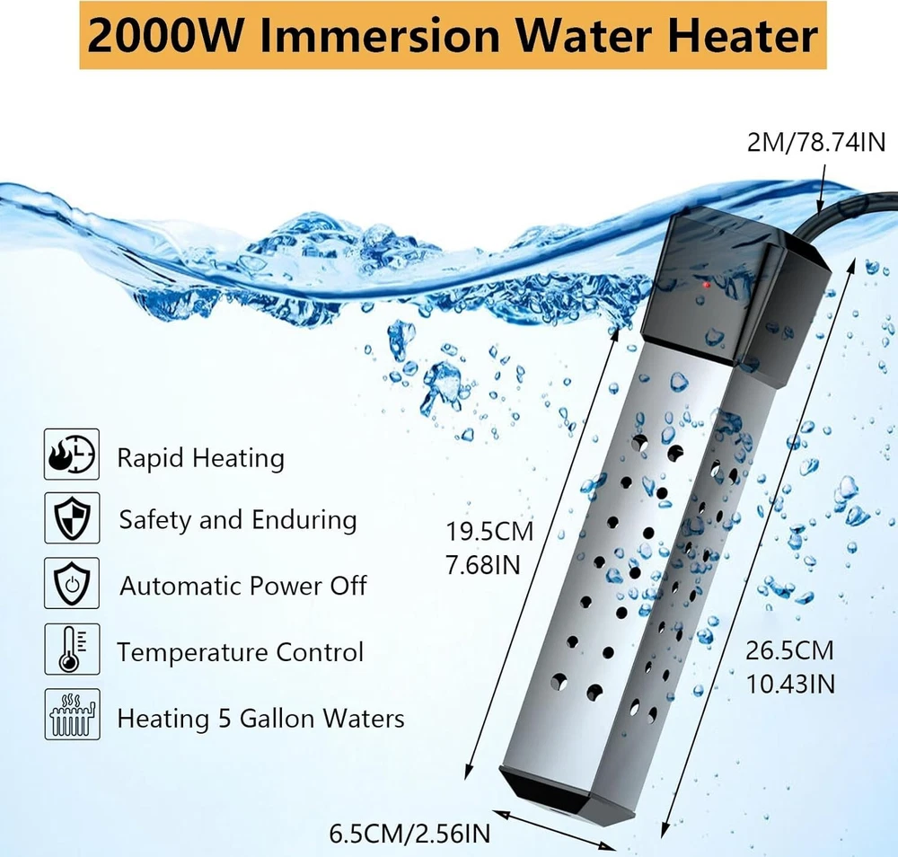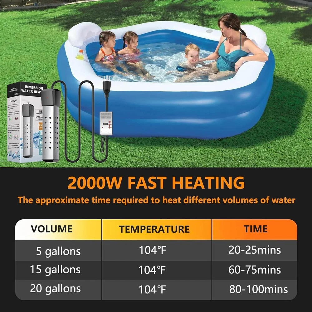 Portable 2000W Pool Heater with Digital Thermostat & Rust-Proof Stainless Guard ‹ › ‹ › ‹ › ‹ › ‹ › ‹ › ‹ › ‹ › ‹ › ‹ › Portable 2000W Pool Heater Experience the serenity of perfectly warm water with our powerful Portable 2000W Pool Heater, designed to transform your swimming experience in inflatable and above-ground pools. Features: POWERFUL 2000W HEATING: Efficiently heats water quickly, allowing you to dive into warm water in minutes. ACCURATE TEMPERATURE CONTROL: Equipped with a built-in LCD thermometer for precise temperature monitoring. Easily set your desired temperature and time, with automatic shut-off upon attainment. VERSATILE IMMERSION HEATER: The portable, submersible design makes it a versatile choice for bathtubs, plastic and wooden buckets, basins, or inflatable pools. STURDY AND SAFE: UL Certified and features a 304 stainless guard that resists rust and corrosion, ensuring reliability during repeated use. FAST HEATING FOR LARGE VOLUMES: Rapidly heats 5-20 gallons of water in minutes, making it the perfect companion for quick warm-ups. Remember, the heater must be fully immersed in water while in use. Benefits: Brings instant warmth to your swimming experience. Control your heating preferences effortlessly with precision. Adaptable for various settings — enjoy warm water baths or pool swims. Durable construction ensures long-lasting use and peace of mind. Ideal for spontaneous get-togethers or peaceful evenings at home. Why choose our Portable 2000W Pool Heater? Don’t let chilly water keep you from enjoying your pool! Our Portable 2000W Pool Heater combines efficiency and safety, ensuring an unforgettable experience. With its robust heating power and user-friendly design, it puts you in control of your comfort. Indulge in smooth, warm waters regardless of the season — order your Portable 2000W Pool Heater today and enhance your hydration ritual! Shipping Free & Fast Shipping - We offer free shipping to most of the USA with a normal delivery time of 3-7 days. However, due to the current situation, additional delivery time (up to 3 weeks) may be required for some items. Alternative Carriers - We may use alternative carriers (e.g. USPS, FedEx, UPS, etc.) to ensure your package arrives safely and on time. Due to the use of multiple carriers, we are unable to provide a tracking number automatically. Handling Time - Orders are processed and shipped within 1-2 business days of receiving cleared payment. Shipping Restrictions - Shipping to Alaska, Hawaii, Puerto Rico, Guam, and other US territories may incur shipping charges or delivery restrictions. Please contact us before ordering, or your order can be refunded/cancelled. State Restrictions - There may be restrictions based on your state of purchase. For example, certain items may not be shipped to California due to state regulations. Contact for Tracking Updates - If you require tracking updates or have any concerns about the delivery of your order, please feel free to contact us, and we will be happy to assist you. Return Please see our eBay Return Policy. Thank you. Payment We accept all major credit cards, PayPal, and Apple Pay for your convenience. Your payment information is secure and encrypted to ensure a safe and seamless transaction. Please complete your payment within 3 days of purchase to avoid any delays in shipping. Feedback Your feedback is extremely important to us. We strive to provide the best products and customer service possible. If you are satisfied with your purchase, please take a moment to leave us a positive review. If you have any concerns or issues with your order, please contact us before leaving negative feedback. We are committed to resolving any problems and ensuring your satisfaction. Contact Us If you have any questions or concerns, please feel free to reach out to our customer support team. You can contact us through the eBay messaging system. We are available Monday to Friday, 9:00 am to 5:00 pm EST, and we will do our best to respond to your inquiry within 24 hours. Thank you for supporting our small family business! UPC: Not Set Unit Quantity: 1 Power Source: Electric Suitable For: Above Ground Pools,Inflatable & Kid Pools,Bathtubs,Plastic Buckets,Wood Buckets,Basins Features: Auto Shut-off,Digital Display,Portable,Temperature Control,Submersible Design,Safety Guard Brand: Unbranded Type: Immersion Water Heater BTUh Heating Rating: 100 Model: Not Set Voltage: 120 V Heating System: Instantaneous (Tankless) Amperage: 20 A Water Temperature Range: Not Specified MPN: Not Set Power: 2001-2500 W Tank Capacity: Not Set Manufacturer: Not Set Water Connection Location: Not Set Country/Region of Manufacture: Not Set Item Width: Not Set Item Weight: 2 lb Manufacturer Warranty: Not Set Item Height: Not Set Item Length: 10.2 Inches Unit Type: lb