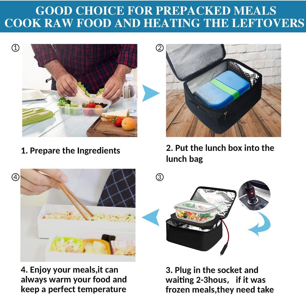 Store Categories Store Categories Other Personal Food Warmer Heating Lunch Box Electric Heater Cooker for 12V 24V Car US Product Description COOKING Raw Food AND REHEAT THE FOOD: Our Portable Oven Personal Food Warmer not only can cook the raw food,but also can reheat the leftovers.It is a slow cooker,there are no dials or timers,this portable microwave oven warms most meals in about 2-3 hours (frozen meals need more time),but you can take it to anywhere. Can accept multiple containers -- Portable Oven Personal Food Warmer,Size 9.2inch x 7.2inch x 4.2inch, as showed on pictures for the size. Our Personal Portable Oven can be use with flat-bottomed, sealed-top containers- made by metal, plastic, glass, cardboard, ceramic material. Portable Oven Durable Material: poly canvas material construction that strengthens & is built to last. Aluminum insulation lining. No worries about food getting burnt or blurred due to automatic temperature control system, preserving moisture and enhancing flavor. Introduction Payment Policy Shipping Policy Returns Policy Introduction Let’s try this food warmer portable mini oven! Designed with an aluminum insulate bag and work with a cigarette lighter for easy using. It comes with below advantage: Eat Healthy – Home cooked meals so you know what's in it! Convenient – Plug it in and it slowly cooks while you work or play! Super Efficient – Uses less energy than a microwave! Save Money – Enjoy delicious hot meals without the high expense of eating out! Main Features Aluminium Insulated Material The mini portable oven is designed with an aluminium insulated tote to maximize heat retention and speed up heating and cooking food. Portable while Easy Operation Collapsible feature and hand-carrying design are easy for taking anywhere. While easy operation with simply plugs into the cigarette lighter in car for working. Prepared Your Food Choose your favorite fresh or prepared meal from the refrigerator or freezer. Payment Policy 1. We accept refund or return within 60-day since item delivered. 2. Faulty items will be replaced or refunded. 3. Contact us if you need to return items, RMA will be provided. Shipping Policy 1.We ship to your eBay or Paypal address. Please make sure your eBay and Paypal address is correct before you pay. 2.Items will be shipped within 1-2 business day when we rece ived payment. 3.Delivery time depends on destination and other factors; --Domestic warehouse-Your address: 3-7 business days. --China Warehouse-Your address: 8-20 business days. Returns Policy 1. Please leave positive feedback and 5-star rating, it helps us do better for you. 2. Please contact us if y ou have any questions before or after purchase. Abo ut us O ur wa re h ouse is in Australia,U.S.,U.K.,Germany and the China , we put a lot of effort on QC, and provide high quality products to you.We are offering life-time technic al support, and the highest level of customer service, please feel free to contact us by ebay message with any questions, concerns or feedback. You will be replied in 24 hours (business days) with satisfied answe r. Copyright © 2023 Dianxiaomi