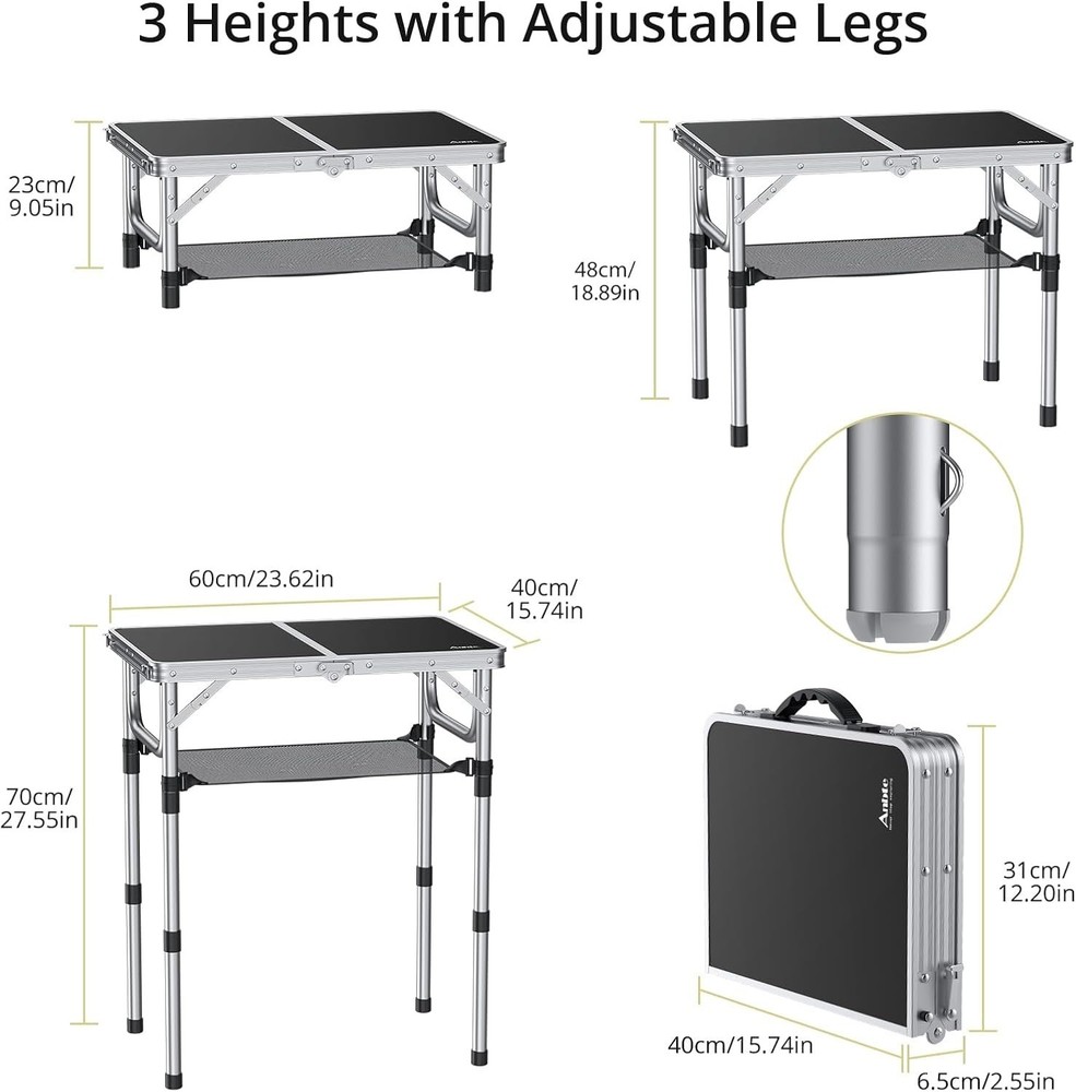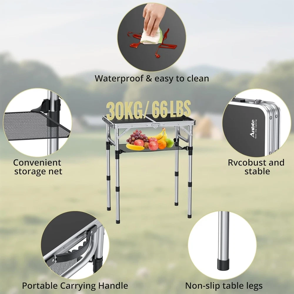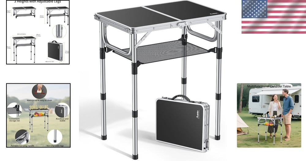 Folding Camping Table Aluminum 24x16in Portable Waterproof Indoor Outdoor ‹ › ‹ › ‹ › ‹ › ‹ › ‹ › ‹ › ‹ › ‹ › ‹ › ‹ › Folding Camping Table Aluminum 24x16in Portable Waterproof Indoor Outdoor Features: Adjustable heights: 10, 18.1, and 27.5 inches (23, 46, and 70 cm) for versatile use. Convenient storage net underneath the tabletop for added space. Easy to set up in less than 1 minute. Folds into a compact briefcase-sized package for effortless transport. Lightweight design at just 5.7lbs, with a robust weight limit of 66lbs. Thicker aluminum alloy frame for unprecedented stability and durability. Waterproof MDF tabletop, smooth and easy to clean. Benefits: Versatile 3 height settings accommodate all your needs, whether you're picnicking or dining. Extra storage space keeps your essentials off the ground, elevating convenience. Quick setup allows for spontaneous adventures, making it ideal for camping, barbeques, and more. Compact and lightweight design ensures it fits easily in any vehicle or storage space. Durable construction guarantees stability on any surface and weather resistance. Perfect for various occasions: BBQs, picnics, family gatherings, and more. Why choose our Folding Camping Table? Seeking the perfect blend of versatility, portability, and stability for your outdoor adventures? Our Folding Camping Table is the answer. With three adjustable heights, you can tailor the table to suit your needs whether seated comfortably on the ground or elevated for dining with friends. Its thoughtful design, including a convenient storage net and easy cleanup, takes the stress out of outdoor entertaining. Don't compromise on convenience or quality; elevate your outdoor experience with this multifunctional table that embodies elegance and practicality. Order yours today to transform your outdoor adventures into luxurious experiences! Shipping Free & Fast Shipping - We offer free shipping to most of the USA with a normal delivery time of 3-7 days. However, due to the current situation, additional delivery time (up to 3 weeks) may be required for some items. Alternative Carriers - We may use alternative carriers (e.g. USPS, FedEx, UPS, etc.) to ensure your package arrives safely and on time. Due to the use of multiple carriers, we are unable to provide a tracking number automatically. Handling Time - Orders are processed and shipped within 1-2 business days of receiving cleared payment. Shipping Restrictions - Shipping to Alaska, Hawaii, Puerto Rico, Guam, and other US territories may incur shipping charges or delivery restrictions. Please contact us before ordering, or your order can be refunded/cancelled. State Restrictions - There may be restrictions based on your state of purchase. For example, certain items may not be shipped to California due to state regulations. Contact for Tracking Updates - If you require tracking updates or have any concerns about the delivery of your order, please feel free to contact us, and we will be happy to assist you. Return 30-Day Hassle-Free Returns - We want you to be completely satisfied with your purchase. If you are not, you can return the item within 30 days of receiving it for a full refund or exchange. Easy Return Process - To start a return, simply contact us and we will provide you with a prepaid return shipping label and detailed instructions. Restocking Fee - There are no restocking fees for returns. However, the buyer is responsible for return shipping costs if the return is not due to a seller's error. Refund Processing Time - Refunds will be processed within 5 business days of receiving the returned item in its condition. Payment We accept all major credit cards, PayPal, and Apple Pay for your convenience. Your payment information is secure and encrypted to ensure a safe and seamless transaction. Please complete your payment within 3 days of purchase to avoid any delays in shipping. Feedback Your feedback is extremely important to us. We strive to provide the best products and customer service possible. If you are satisfied with your purchase, please take a moment to leave us a positive review. If you have any concerns or issues with your order, please contact us before leaving negative feedback. We are committed to resolving any problems and ensuring your satisfaction. Contact Us If you have any questions or concerns, please feel free to out to our customer support team. You can contact us through the eBay messaging system. We are available Monday to Friday, 9:00 am to 5:00 pm EST, and we will do our best to respond to your inquiry within 24 hours. Buy it now and enjoy a pleasant shopping experience! Folded Dimensions: 24W x 16H x 2D Item Height: 67 Centimeters Item Width: 0.4 Meters Item Weight: 2.4 kg Unit Quantity: 66 Frame Material: Aluminum,MDF Tabletop Material: Aluminum Set Includes: Table,Storage Net Suitable For: Backpacking,Camping,Hiking,Indoor,Indoor/Outdoor Features: Foldable,Lightweight,Portable,Waterproof,Adjustable Height,Stability,Convenient Storage Net Type: Camping Table Color: Black Weight Capacity: 66 pounds