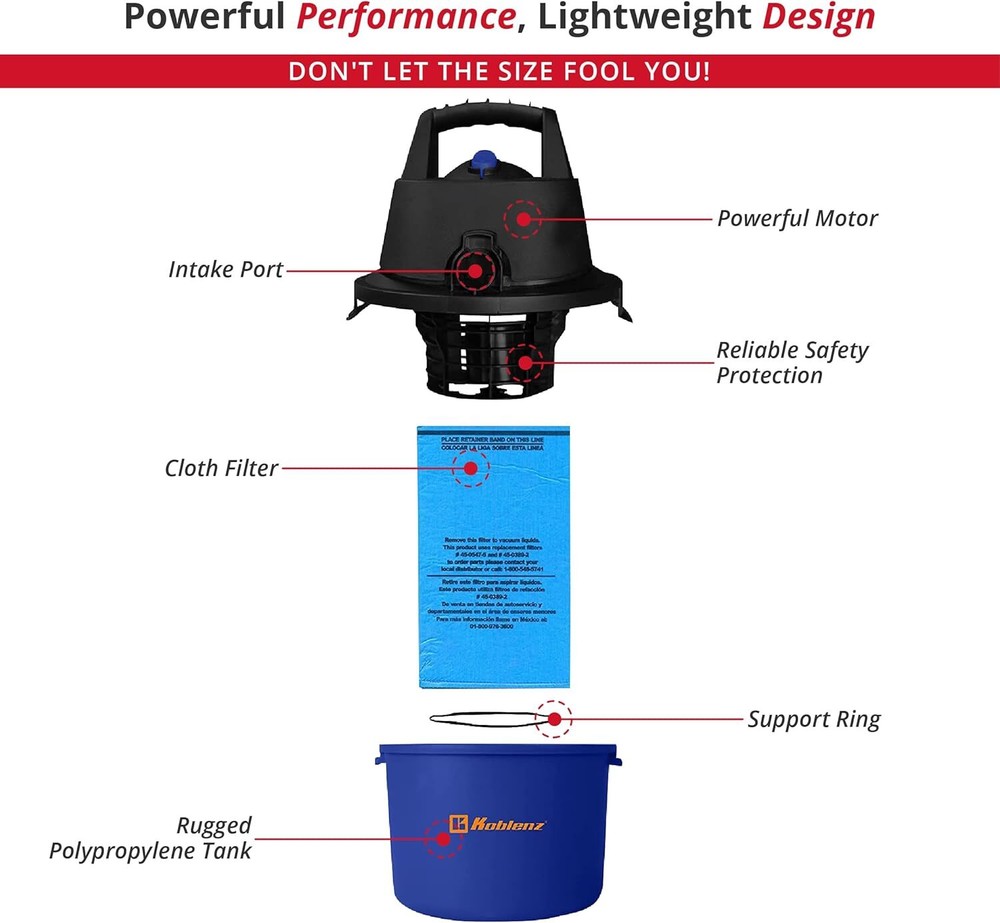 15.7" Square Iron Bonfire Pit Outdoor Camping Wood Burning Fire Pit 46.58 USD 49.55 USD Free shipping 6% off 26"Fire Pit Bowl Wood Burning Portable Outdoor Firepit Fireplace Camping Bonfire 64.57 USD 68.69 USD Free shipping 6% off 24"Round Fire Pit Grate w/10 Bars for Firepit Firewood Log Burning Rack Holder 53.57 USD 56.99 USD Free shipping 6% off 6-in-1 Hand Immersion Blender 1000W 12-Speed Handheld Blender with 600ml Beaker 50.98 USD 54.23 USD Free shipping 6% off 30" Backyards Fire Pit Poker Steel Firepit Tool with Built-in Bottle Opener NEW 49.54 USD 52.7 USD Free shipping 6% off 2-in-1 Portable Fire Pit with Pot Bracket & Carry Bag 8" Mini Tabletop Fireplace 40.6 USD 43.19 USD Free shipping 6% off Rustproof Shower Corner Caddy Organizer 4 Adjustable Shelves Tension Pole Holder 67.67 USD 71.99 USD Free shipping 6% off Tension Pole Shower Caddy 4 Basket Shelves Built-in Towel Bar Adjustable 60-97" 46.3 USD 49.26 USD Free shipping 6% off Electric Coffee Percolator 12 Cups Quick Brew Stainless Steel Easy Pour New 62.03 USD 65.99 USD Free shipping 6% off Set of 30 Clear Glass Bud Vases Thick Strong Wedding Centerpieces Decor New 48.77 USD 51.88 USD Free shipping 6% off Electric Lunch Box 80W Fast Heating Portable Food Warmer Dual Containers Travel 45.11 USD 47.99 USD Free shipping 6% off Premium Knife Sharpening Stone Set Flattening Stone Bamboo Base Nonslip Bases 49.62 USD 52.79 USD Free shipping 6% off Special Feature Portable, Lighweight, Compact, Filter Type Cloth Included Components KOBLENZ 2.0G/2.0PHP Wet-Dry Vac, 1-1/4 In x 4 Ft TWIST-N-LOCK Hose, Crevice Tool, Utility Nozzle, Filter Bag, Is Cordless? No Surface Recommendation Counter tops, carpet, upholstery, hard floors and surfacesCounter tops, carpet, upholstery, hard floors and surfaces See more Power Source Corded Electric Voltage 120 Volts Item Weight 5.7 Pounds About this item Powerful Vacuum Cleaner: Experience the exceptional power of the Koblenz WD-2L Wet Dry Vacuum Cleaner. This compact and lightweight 2.0-gallon vacuum features a wattage of 360 watts and a flexible 4-foot hose for exceptional performance.Specific uses:Spot cleaning around the home Effortless Storage: The vacuum provides designated compartments or hooks to securely store all the included accessories, such as the TWIST-N-LOCK Hose, Crevice Tool, Utility Nozzle, and Filter Bag, for convenience Cord Management: Say goodbye to tangled cords. Our car vacuum portable cleaner offers a built-in cord management system, eliminating cord clutter and making it quick and hassle-free to unwind and plug in the vacuum when you're ready to clean Versatile Wet Dry Vacuum: Designed to handle small messes in various settings, the Koblenz WD-2L Wet Dry Vacuum offers 3-in-1 capability. It effortlessly sucks up dry debris and liquid spills and can even transform into a powerful blower Compact Car Vacuum: Whether you're cleaning countertops, carpets, upholstery, hard surfaces, or car interiors, this wet dry vacuum is your reliable companion. Our vacuum cleaner's compact design ensures easy storage without taking up valuable space You may also like Portable Outdoor Propane Heater for Golf Cart with Gas Tank Stand Holder 6200BTU 62.03 USD 65.99 USD Free shipping 6% off Set of 30 Clear Glass Bud Vases Thick Strong Wedding Centerpieces Decor New 48.77 USD 51.88 USD Free shipping 6% off Angle Head F1807 PEX Pipe Crimping Tool for Copper Rings 1" Angle Single Crimper 78.92 USD 83.96 USD Free shipping 6% off Outdoor Garden Hose Storage Pot Decorative w/Drainage Hole Hose Holder Patina US 84.59 USD 89.99 USD Free shipping 6% off 208 Piece Tool Set Household Hand Tool Kit Auto Repair Tool Box for Home Repairs 67.67 USD 71.99 USD Free shipping 6% off 12PC Metric Flex-Head Ratcheting Wrench Set 8-19 mm Ratchet Combination Wrenches 42.85 USD 45.59 USD Free shipping 6% off 4 Pack Aluminum Corner Clamp for Woodworking 90 Degree Clamp Right Angle Clamp 48.49 USD 51.59 USD Free shipping 6% off Ergonomic Office Chair Video Gaming Chairs Massage PU Leather Computer Chair 54.25 USD 57.71 USD Free shipping 6% off Compact Porta Aim Gun Rest Portable Quick Height Adjustable Bench Rest Black HOT 60.34 USD 64.19 USD Free shipping 6% off US Foldable Walker with Seat Aluminum Rollator Walker 8" Big Wheels for Seniors 101.51 USD 107.99 USD Free shipping 6% off 18in Ceramic Christmas Tree Pre-lit Hand-Painted Tabletop Holiday Decor Tree US 82.64 USD 87.91 USD Free shipping 6% off Ergonomic Computer Office Chair Massage Gaming Chairs Recliner with Footrest US 88.79 USD 94.46 USD Free shipping 6% off