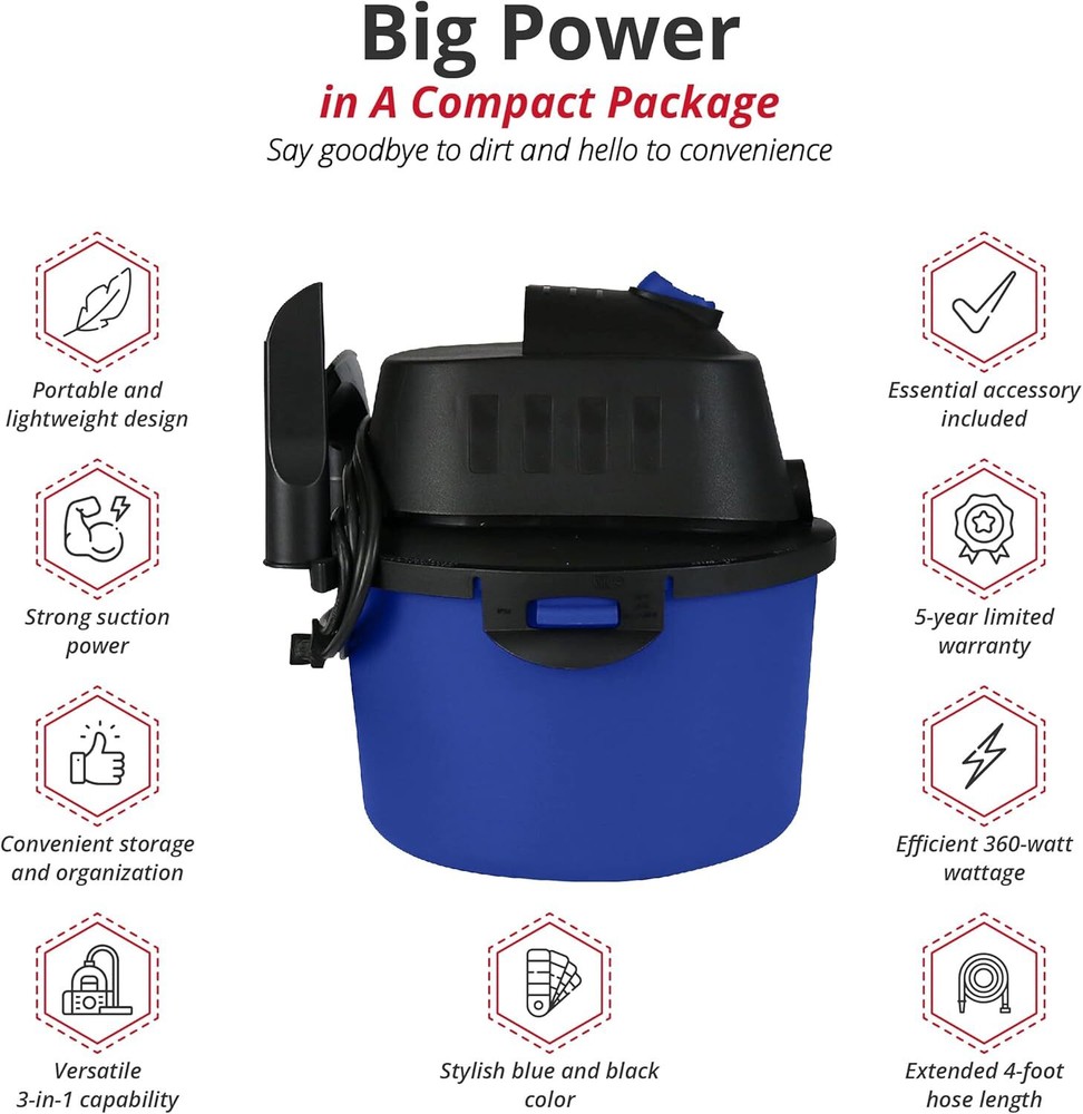 This portable wet-dry shop vac is a game-changer! Super lightweight yet powerful, it easily tackles spills, sawdust, and debris. The compact 2.0-gallon size is perfect for cars, garage, or quick cleanups. Surprisingly strong suction for its size, and I love that it handles both wet and dry messes. Even comes with handy attachments—great value for the price!