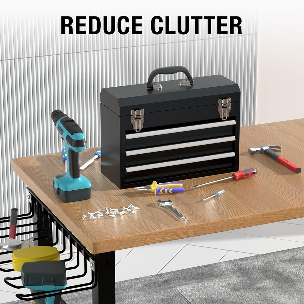 Product Description Portable Metal Tool Box, 3-Drawer Steel Organization Micro Tool Chest for Household, Warehouse, Repair Shop, Black 100% metal đ§°ăMore Relaxedă- Please attention that It's a small box, Our original intention of developing the toolbox is that you will feel more relaxed when you go to work with it. please check the size before you place an order. If you mind, please don't buy it. đ§°ăExtra storageă- The steel tool box consists of two ample drawers and a deep top storage compartment allow for maximum organization and flexibility, the full-extension steel drawer slides, allow access to the entire drawer and easy to open, you can get the tools you need more quickly. Hold up to 88LBS. đ§°ăEasy to Moveă- Portable tool box convenient design features a carrying handle and lightweight construction, comfortable handle allows you carry the box easily even when it's filled, the lock bar keep drawer tight, Automatic locking when the lid is closed, prevent the drawer from slipping out when toolbox carried. đ§°ăsecure Designă- The tool box has 2 steel lock latches, Prevent the top box from opening accidentally to cause the tool to fall. The middle of top with lock bar, when you open the lid to take out the tool, the lid will not suddenly close and crush your hand. About Us We are a reputable seller with many years of experience selling on eBay. Our goal is to provide high-quality products and excellent customer service. Shipping Items will be shipped within 1-3 business days when we received payment. (Orders are not processed on weekends & holidays) Tracking information will be sent once item is shipped. Delivery time depends on destination and other factors Item is shipped to ebay address. Leaving correct address can minimize delay. For international shipping and shipping to Guam, Hawaii and Alaska, Please contact us before placing the order. International buyers please note: Import duties, taxes and charges are not included in the item price or shipping charges. These charges are buyerâs responsibility. We will try our best to reduce the risk of the custom duties. Local pick-up is unavailable at the moment. Contact Us We reply any email messages within 1 business / working days(off-duty at weekend). If you do not get a response from us, then please check your junk or spam mailbox. Our Business hours: Mon-Fri 9:00-18:00, UTC/GMT +8 hours. Please contact us either by clicking "contact seller" in the "purchase history" section or simply click "ask a question" at the bottom of this page. If you are unsatisfied with our item or service, please contact us before leaving any feedback. We are committed to resolve all issues in a friendly and satisfactory manner.
