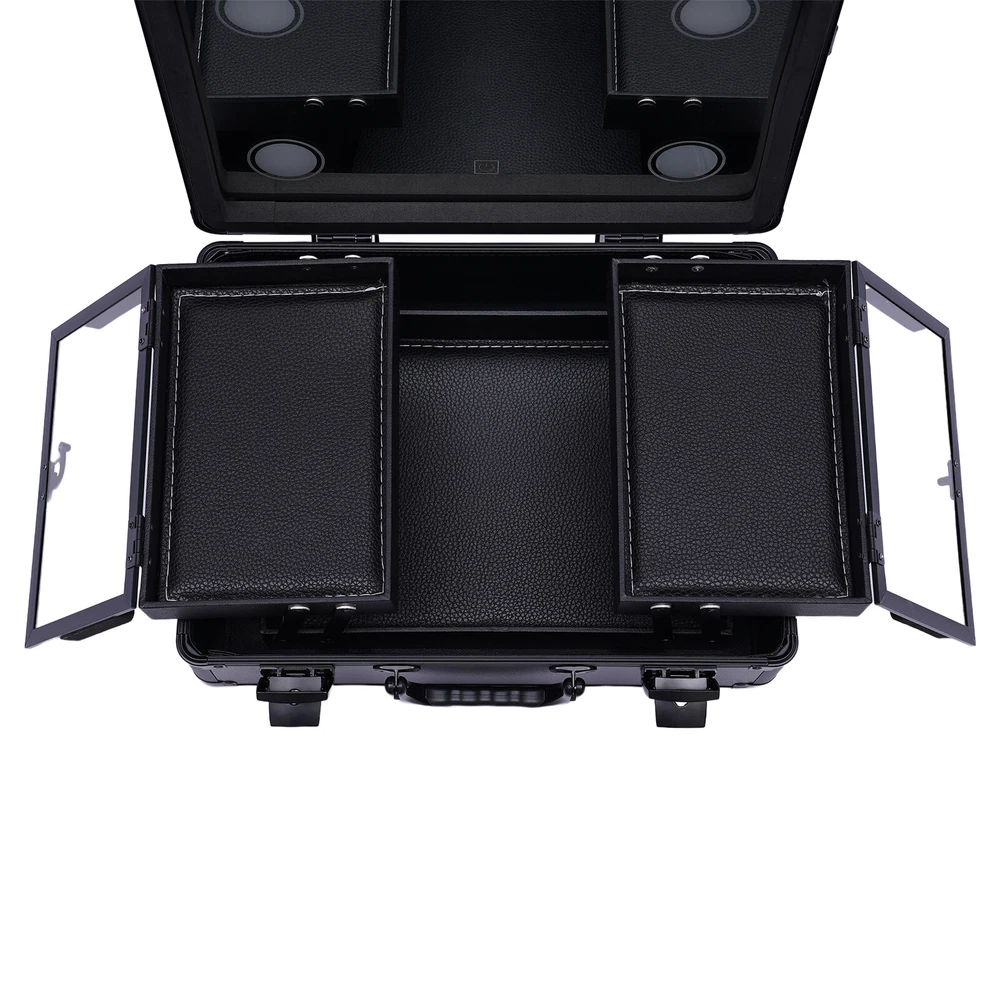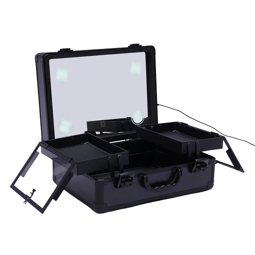 Specification Main Material: ABS Color: Black Plug Type: US Light Source: LED Light Color: Cold White, Warm White and Natural Light Voltage: 110-240v, 50-60Hz Power Cord Length: 1.8m/5.91ft Package Size: 40*21*35cm/15.75*8.27*13.78in Top Cover Mirror Size: 37*28*6.5cm/14.6*11*2.6in Bottom Tray Size: 37*28*9.5cm/14.6*11*3.7in Overall Case Size: 37*28*16cm/14.6*11*6.3in Center Tray Size: 15*22*4cm/5.9*8.7*1.6in Gross Weight: 4kg/8.82lbs Net Weight: 3kg/6.61lbs Package Included 1*Makeup Train Case 1* Power Cord Notes Please allow the slight color difference caused by the shooting light and 1-3cm error due to manual measurement, and make sure you do not mind before you order. Have a nice day~ Specification Main Material: ABS Color: Black Plug Type: US Light Source: LED Light Color: Cold White, Warm White and Natural Light Voltage: 110-240v, 50-60Hz Power Cord Length: 1.8m/5.91ft Package Size: 40*21*35cm/15.75*8.27*13.78in Top Cover Mirror Size: 37*28*6.5cm/14.6*11*2.6in Bottom Tray Size: 37*28*9.5cm/14.6*11*3.7in Overall Case Size: 37*28*16cm/14.6*11*6.3in Center Tray Size: 15*22*4cm/5.9*8.7*1.6in Gross Weight: 4kg/8.82lbs Net Weight: 3kg/6.61lbs Package Included 1*Makeup Train Case 1* Power Cord Notes Please allow the slight color difference caused by the shooting light and 1-3cm error due to manual measurement, and make sure you do not mind before you order. Payment Delivery details Terms of sales About us Contact us Payment We accept ebay payment 。 Fees such as import duties, taxes are not included in the item price or shipping costs. These charges are the buyer's responsibility. Delivery details Shipping: 2-9 working days to: USA Terms of sales We maintain high standards of excellence and strive for hundred percent customer satisfaction. Feedback is very important to us. We hope that you contact us immediately before you give neutral or negative feedback, so that we can address your concerns. It is impossible to address issues if we do not know about them! About us Your satis faction is our ultimate goal. We work hard to earn your trust and future business. Our certified technicians have tested each item before shipping. The unit comes with 1 year limited warranty on all manufacturing defects. a) If you receive a defective item, you may return it or ask for a discount. Please contact us within 14 days after you receive the package. b) What you returned must be intact and in its original packaging as re? u. Customer is responsible for shipping costs of the returned item. c) We will cover the cost of shipping back t with the shipping rate indicated in the registration page. We will send you a new unit or refund the full payment you paid. Thank you. Contact us Business Hour Business Hour: Monday To Friday: 8:30 AM to 5:00 PM (Beijing China time) Due to time zones, our reply to your questions may not be immediately. But within above working time, we will reply your email within 24 hours. If it's non-workdays, please kindly be patient and wait till Monday. Please contact us with ebay message. Please feel free to contact us if you have any questions. Monday To Friday: 8:30 AM to 5:00 PM (Beijing China time) Due to time zones, our reply to your questions may not be immediately. But within above working time, we will reply your email within 24 hours. If it's non-workdays, please kindly be patient and wait till Monday. Please contact us with ebay message. Please feel free to contact us if you have any questions.