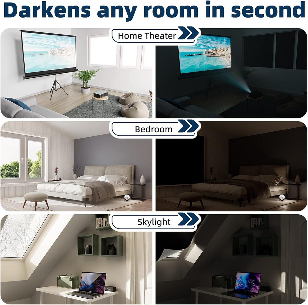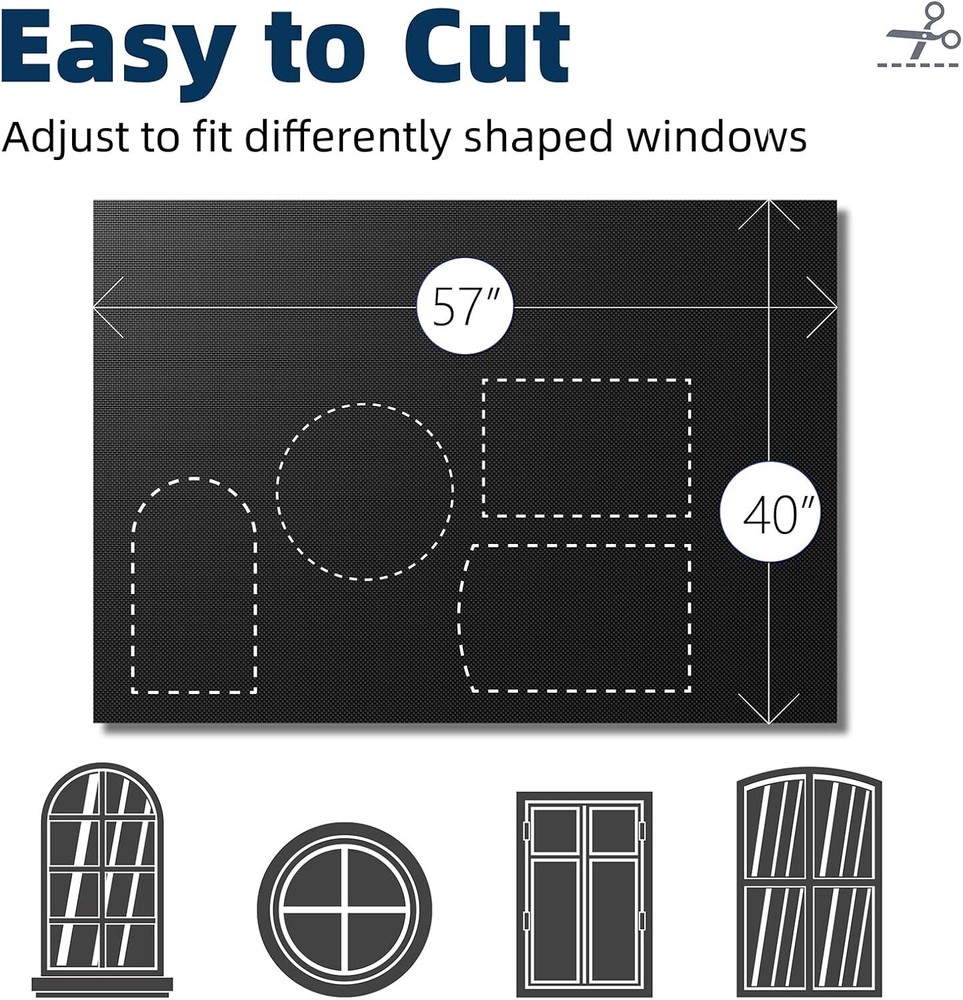 100%BLACKOUT 100% blackout curtains, lightweight fabric for easy portability, blocks sunlight in summer and reduces heat loss in winter, Perfectly blackout shading to create a comfortable dark sleeping environment UPGRADED HOOK AND LOOP TAPE- Self adhesive hook and loop tape strips,strong grip and back very sticky can help to keep your portable blackout blinds on a variety of surface types, such as plastic, wood, and glass other flat.No marks or residues after removing and can be attached without drilling DIY SHAPE- 101×145cm(40”×57”)Black out curtains can be cut to any shape or size you need, perfectly suited for RV, doors, sunroofs, rectangular, round and polygonal window MATERIAL SAFETY- Our blackout curtains are non-toxic and Formaldehyde-free, environmental protection, easy installation, suitable for baby rooms or night shift workers, etc. To create a blackout-shaded environment for the interior and improve sleep quality EXCELLENT QUALITY ASSURANCE- To ensure the quality, each of our blackout curtains undergoes strict quality control before leaving the factory. If you have any questions about our portable blackout curtains, feel free to contact us, we will reply you within 24 hours and give you a satisfactory solution