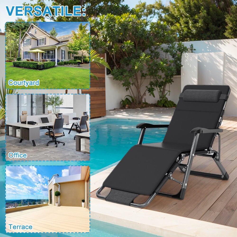 luckysellerbuy015 Add to my favorite sellers Mon. to Sat. Customer Service Warranty Service Product Description Lounge Chair Foldable Recliner Chair Adjustable Patio Recliner with Headrest Cushion for Indoor Outdoor Feature: 1. Ultimate Comfort: The folding camping bed is designed to provide the perfect balance of durability and softness, delivering an ultimate comfort experience. With its ergonomic design and five adjustable positions, you can comfortably sit, recline, or even lie down. 2. Thick Foam Cushion: This adjustable lounge chair comes with a foam-filled cushion that enhances comfort and includes a removable headrest. It's perfect for use as a temporary bed in your office or for guests, providing a comfortable and private experience. 3. Sturdy and Durable: The adjustable lounge chair features a heavy-duty steel frame that can support up to 264 pounds. It accommodates individuals up to 70 inches tall, allowing you to stretch out your legs and change positions freely. Made with Oxford material, this high-quality folding lounger is built to last for years. 4. Easy Installation and Transport: The adjustable recliner chair is designed with a foldable and space-saving design, making it easy to transport. You can set it up or fold it within 10 seconds without the need for any tools. 5. Versatile Use: The patio recliner is suitable for various activities. Whether you're sunbathing in your backyard, relaxing on your patio, or unwinding by the pool or beach, this portable lounger is the perfect way to enjoy your leisure time. Specification: Width(Mattress Size): 660mm(660mm) Bed Surface Fabric: Fabric Material: Metal Appearance: Modern Style With Backrest: Yes Installation Method: self-contained Hign-concerned Chemical: None Size: 970.00x660.00x160.00mm/38.19x25.98x6.3inch Note: Due to the different monitor and light effect, the actual color of the item might be slightly different from the color showed on the pictures. Thank you! Please allow 1-2cm measuring deviation due to manual measurement. Included 1 X Folding recliner 1 X Headrest 1 X Dust cover Payment Warranty Shipping Policies Contact Us * Payment must be received within 7 business days of auction end. * If you purchase multiple items from me, you can pay me one lump sum for all items rather than having to pay individually. When you click the Pay Now button, eBay will automatically determine if you have won or purchased other items from me and will combine them for your review. * Refunds are usually issued within 2 business days. If you need more information about payment, please contact us via eBay message. * If you have any special requests, please send us a message before making the payment. *NOTE: Import duties, taxes and chargers are not included in the item price or shipping charges. These charges will be paid by the Buyer. Please check with your country's customs office to determine what these additional costs will be prior to bidding buying. * 12 months Warranty. Buy with confidence! * If you receive an item and are not satisfied, please return it within 14 days for an exchange or refund. Please contact me before returning items. * If an item is defective within 3 months, we will send you a replacement at no extra charge or provide a refund upon receipt of the defective item. * If item is defective after 3 months, you can still send it back to us. We will send you a new one after receiving the defective item. But you have to pay the extra shipping fee. * We ship from United States. * Items will be shipped within 2 business days after payment is received. * NOTE: Please check the package before signing for it. If there is any problem, please indicate "Damaged on receipt" on your signature when signing for it. Thanks. * We are not responsible for any customs duties or import taxes. * We will leave positive feedback after payment is received. If you are not satisfied after receiving the item, please contact us. * All messages will be responded within 1 business day. If you do not receive a reply from us, please resend your message and we will get back to you asap. * Serious Buyer Only! Only bid if you agree to all terms. * If you have any questions or concerns about your order or product, please leave us a message before leaving any feedback to give us the opportunity to assist you. We believe we can achieve positive results in any situation and will work hard to earn your praise. * If you are satisfied with this transaction, please give us a 5-star rating, thank you! * Our office hours are 9:00 a.m to 6:00 p.m (GMT +8) of Monday to Saturday. * And our Office is closed on Sunday and public holidays.