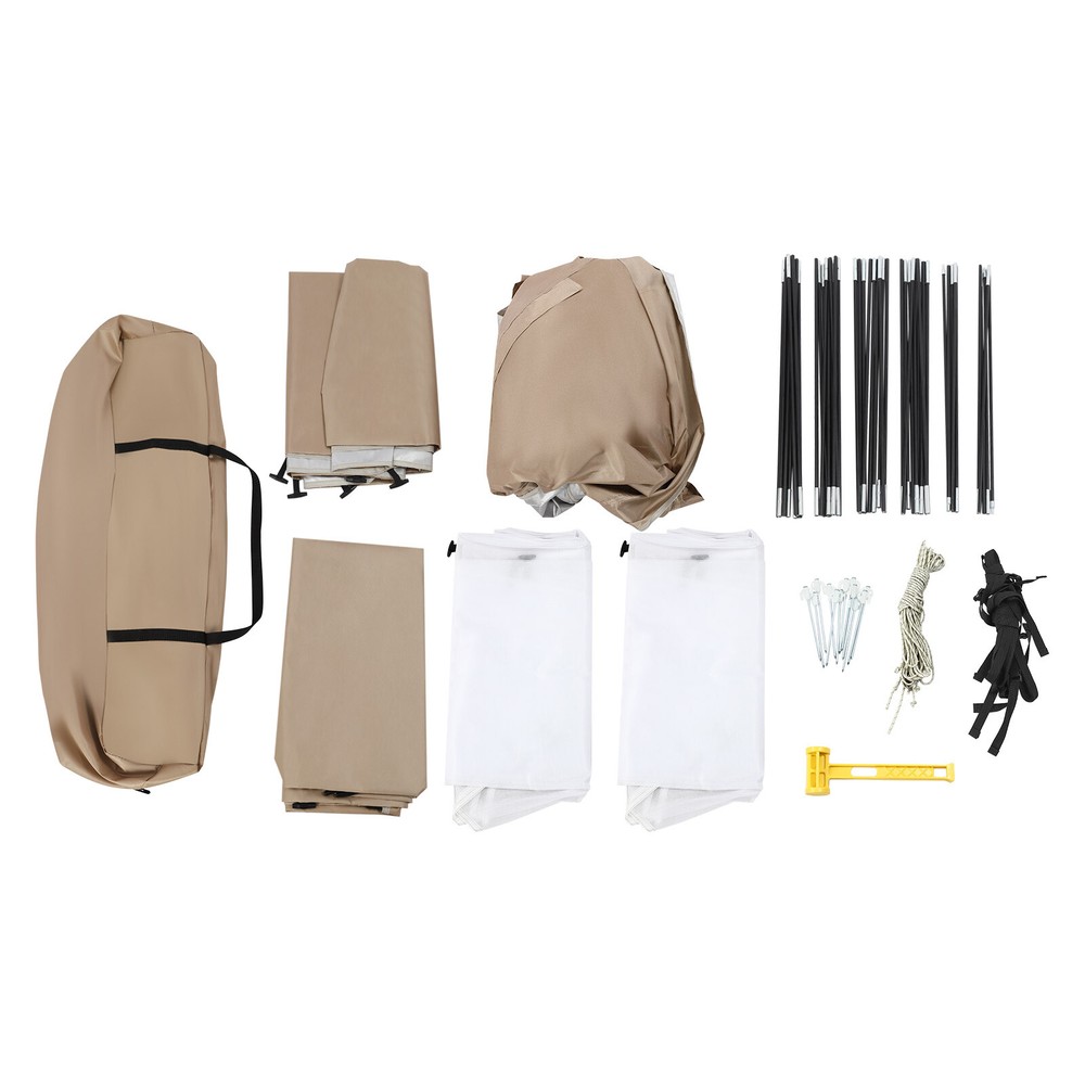 Portable 6-8 Person Beach Tent Sun/Heat Resistant Outdoor Canopy Shelter Khaki Description Want to have a great time outdoors with your friends? This beach tent may be able to do it. It's not just a piece of equipment but also an attitude for the good life, leading you to an outdoor world of endless possibilities and inspiration. Whether you want to go camping, picnics, or fly to a coastal paradise, it does it all with ease, making it easy to enjoy your outdoor time. Key Features Selected Material : Our tent is made of high-quality glass fiber and Oxford cloth with silver sunscreen coating, which blocks intense sunlight, prevents sunburned skin, and reduces glare. Stable Structure: 4 legs provide stable support and hold the product in place with ground stakes. In addition, we have added straps for securing poles and tents. At this point, the straps, tent legs, and support rods form a stable structure, ensuring stronger stability without easily collapsing. Thoughtful Design : The mesh screen can provide you with a good view, allowing you to easily observe the outside, and the door design allows you to enter and exit easily, which is very convenient. Two door curtains and two mesh screens can be installed or removed as needed, which is very flexible and can meet your outdoor sun and wind protection needs. Spacious Space: The tent measures 13.78*13.78*7.55ft, the interior is spacious and can accommodate 6-8 people, ensuring you have enough shade on the beach with your friends while enjoying the sea breeze. Enjoy Outdoor Time : This tent is carefully designed to let you immerse yourself in the outdoor fun and enjoy the beauty of nature. Inside, you can feel the light sea breeze, sunlight, and leave the chaos of daily life behind, and experience a poetic life away from the hustle and bustle of the world, close to nature. Portable and Space-saving: The foldable design and a carrying bag make it easy for you to carry and store the tent. When you're not using it, you can place it in your garage or store it in a cabinet without taking up too much space. Easy Maintenance : This product has a simple structure and can be disassembled for cleaning and maintenance. The tent can be hand-washed, and the poles can be easily cleaned with a damp towel. Ideal Gift: With practical function, this product is an ideal gift for family, friends, and others who like outdoor beach activities. Customer Service: We aim to provide quality products and services. If you have problems, please feel free to contact us. We will reply and solve the problem for you as soon as possible. Details Fine Stitching: The finely stitched edges allow for higher durability without easily breaking while improving the texture of this product. Hook : It is convenient for you to open and close the door. Top Opening : You can open it to diffuse the smoke effectively when barbecuing. Application It can be used at the beach, camping, fishing, backyard, picnic, and lawn, suitable for outdoor gatherings with family and friends. How to Install Connect two short poles and four long poles respectively. Pass the 2 short poles through the top tube sleeve and insert the ends of the poles into the metal rings. Pass the 4 long poles through the four-door frame sleeves and insert the metal clips at the bottom of the tent into the four pole holes. After putting on the poles, lift the tent, tie the connecting ropes, hang the buckles, and fix the stakes. Finish setting up. Specifications Color: Khaki Style: Modern Material: Glass Fibre, Oxford Cloth Assembly Required: Yes Indoor or Outdoor Use: Outdoor Capacity: 6-8 People Care Instructions: Hand-wash Sunshade Are a: 17.6㎡/189.44ft² Product Size: 4.2*4.2*2.3m/13.78*13.78*7.55ft Gross Weight: 6.85kg/15.1lbs Net Weight: 6.5kg/14.33lbs Package Size: 79*20*16cm/31.1*7.87*6.3in Package Included 1* Beach Tent 1* Storage Bag All Accessories for Installation Notes Please note that this product is not suitable for machine washing. Please note that this product is intended for outdoor use only. Please note that this product is not flame retardant and should be used away from sources of ignition. Please allow the slight color difference caused by the shooting light and 1-3cm error due to manual measurement, and make sure you do not mind before ordering. Payment Delivery details Terms of sales About us Contact us Payment We accept ebay payment 。 Fees such as import duties, taxes are not included in the item price or shipping costs. These charges are the buyer's responsibility. Delivery details Shipping: 2-9 working days to: USA Terms of sales We maintain high standards of excellence and strive for hundred percent customer satisfaction. Feedback is very important to us. We hope that you contact us immediately before you give neutral or negative feedback, so that we can address your concerns. It is impossible to address issues if we do not know about them! About us Your satis faction is our ultimate goal. We work hard to earn your trust and future business. Our certified technicians have tested each item before shipping. The unit comes with 1 year limited warranty on all manufacturing defects. a) If you receive a defective item, you may return it or ask for a discount. Please contact us within 14 days after you receive the package. b) What you returned must be intact and in its original packaging as re? u. Customer is responsible for shipping costs of the returned item. c) We will cover the cost of shipping back t with the shipping rate indicated in the registration page. We will send you a new unit or refund the full payment you paid. Thank you. Contact us Business Hour Business Hour: Monday To Friday: 8:30 AM to 5:00 PM (Beijing China time) Due to time zones, our reply to your questions may not be immediately. But within above working time, we will reply your email within 24 hours. If it's non-workdays, please kindly be patient and wait till Monday. Please contact us with ebay message. Please feel free to contact 