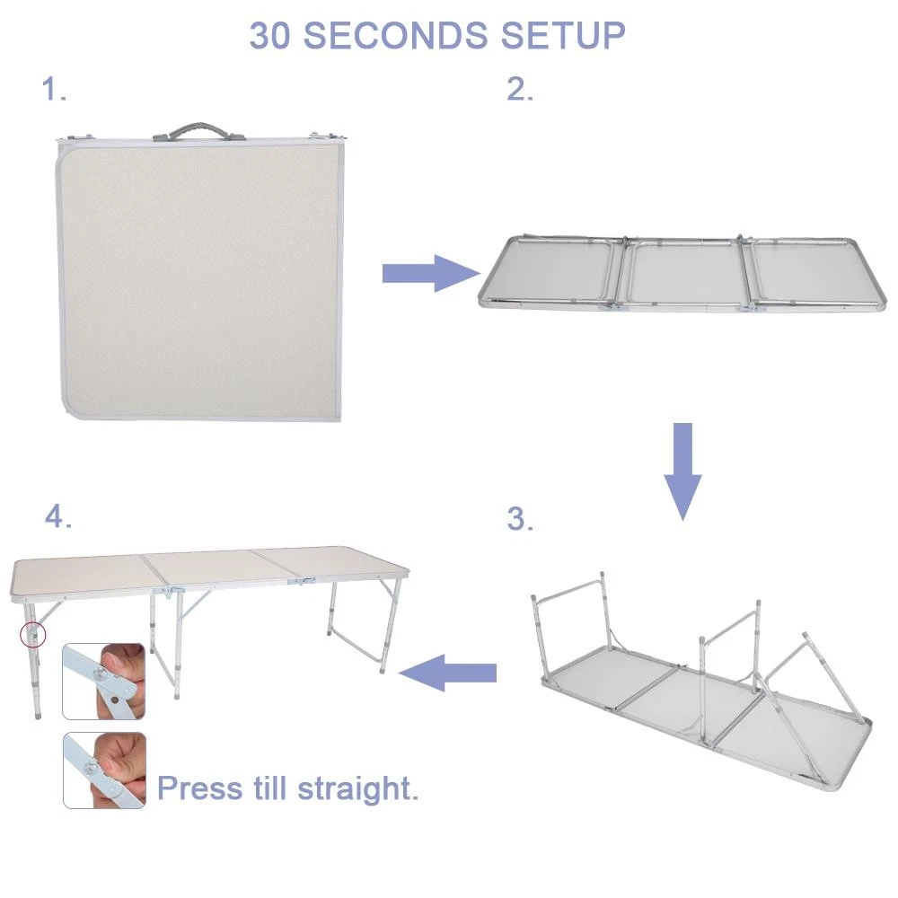 Portable 6FT Aluminum Folding Table for Indoor Outdoor Picnic Camping Party Dining