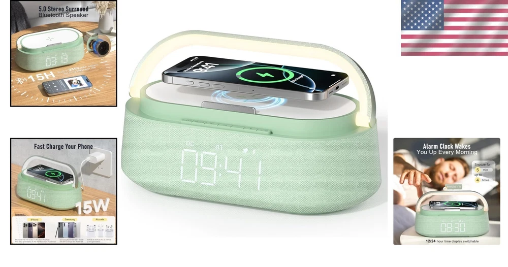 Portable 6-in-1 Alarm Clock with Bluetooth, Wireless Charging, and Night Light ‹ › ‹ › ‹ › ‹ › ‹ › ‹ › ‹ › ‹ › ‹ › ‹ › Portable 6-in-1 Alarm Clock All-in-One Functionality: A smart alarm clock that combines a Bluetooth speaker, wireless charger, FM radio, digital alarm clock, adjustable night light, and phone stand - all in one elegant design. 15W Fast Wireless Charging: Equipped with an intelligent charging protocol for fast, safe wireless charging to keep your devices powered, including the latest iPhone and Samsung Galaxy models. Effortless Wake-Up: Features an alarm clock with a 5-minute snooze mode, allowing for a short delay to ensure you rise refreshed. Exceptional Sound Quality: Enjoy clear sound and rich bass with dual speakers and the latest Bluetooth 5.0 technology for stable connections within 33 feet. Attractive Night Light: Touch-sensitive, adjustable night light with three brightness levels - creating the perfect ambiance for reading, working, or soothing children to sleep. Chic Home Decor: Crafted from high-quality materials, this alarm clock not only enhances your bedroom, living room, or kitchen decor but also makes an exquisite gift for any special occasion. Why Choose Our 6-in-1 Alarm Clock? Transform your space into a modern sanctuary with our Portable 6-in-1 Alarm Clock. This multifunctional piece is designed to meet your daily needs, seamlessly integrating aesthetics with advanced technology. Never deal with the hassle of multiple devices again; enjoy the convenience of wireless charging while listening to your favorite music or waking up gently to your personalized settings. Whether it’s a special occasion or simply to elevate your home decor, this alarm clock is the perfect blend of style and function. Make the smart choice today – order your Portable 6-in-1 Alarm Clock and embrace a new dawn of tranquility and efficiency! Shipping Free & Fast Shipping - We offer free shipping to most of the USA with a normal delivery time of 3-7 days. However, due to the current situation, additional delivery time (up to 3 weeks) may be required for some items. Alternative Carriers - We may use alternative carriers (e.g. USPS, FedEx, UPS, etc.) to ensure your package arrives safely and on time. Due to the use of multiple carriers, we are unable to provide a tracking number automatically. Handling Time - Orders are processed and shipped within 1-2 business days of receiving cleared payment. Shipping Restrictions - Shipping to Alaska, Hawaii, Puerto Rico, Guam, and other US territories may incur shipping charges or delivery restrictions. Please contact us before ordering, or your order can be refunded/cancelled. State Restrictions - There may be restrictions based on your state of purchase. For example, certain items may not be shipped to California due to state regulations. Contact for Tracking Updates - If you require tracking updates or have any concerns about the delivery of your order, please feel free to contact us, and we will be happy to assist you. Return 30-Day Hassle-Free Returns - We want you to be completely satisfied with your purchase. If you are not, you can return the item within 30 days of receiving it for a full refund or exchange. Easy Return Process - To start a return, simply contact us and we will provide you with a prepaid return shipping label and detailed instructions. Restocking Fee - There are no restocking fees for returns. However, the buyer is responsible for return shipping costs if the return is not due to a seller's error. Refund Processing Time - Refunds will be processed within 5 business days of receiving the returned item in its original condition. Payment We accept all major credit cards, PayPal, and Apple Pay for your convenience. Your payment information is secure and encrypted to ensure a safe and seamless transaction. Please complete your payment within 3 days of purchase to avoid any delays in shipping. Feedback Your feedback is extremely important to us. We strive to provide the best products and customer service possible. If you are satisfied with your purchase, please take a moment to leave us a positive review. If you have any concerns or issues with your order, please contact us before leaving negative feedback. We are committed to resolving any problems and ensuring your satisfaction. Contact Us If you have any questions or concerns, please feel free to reach out to our customer support team. You can contact us through the eBay messaging system. We are available Monday to Friday, 9:00 am to 5:00 pm EST, and we will do our best to respond to your inquiry within 24 hours. Buy it now and enjoy a pleasant shopping experience! UPC: Not Set Unit Quantity: 1 Charging Power Range: 15W Item Height: Not Set Item Length: Not Set Item Width: Not Set Connectivity: Bluetooth,Wireless Audio Inputs: None Smart Home Compatibility: None Surround Sound Formats: None Color: Green Features: Bluetooth,Touch Control,Wireless Charging,FM Radio,Snooze Function,Night Light,Fast Wireless Charging,Touch Adjustable Night Lights,Alarm Clock with Snooze Compatible Model: Universal Compatible Brand: Not Set Brand: Unbranded Model: Bluetooth Speaker with Charger Type: Bluetooth Speaker System Configuration: 2.0 Channel MPN: Not Set RMS Power: 15 W Unit Type: lb Battery Capacity: None Item Weight: 2.44 pounds Manufacturer Warranty: Not Set Country/Region of Manufacture: Not Set Material: Imported ABS+PP+Hardware Plug Regional Fitment: Not Set Shape: Rectangular Year Manufactured: Not Set